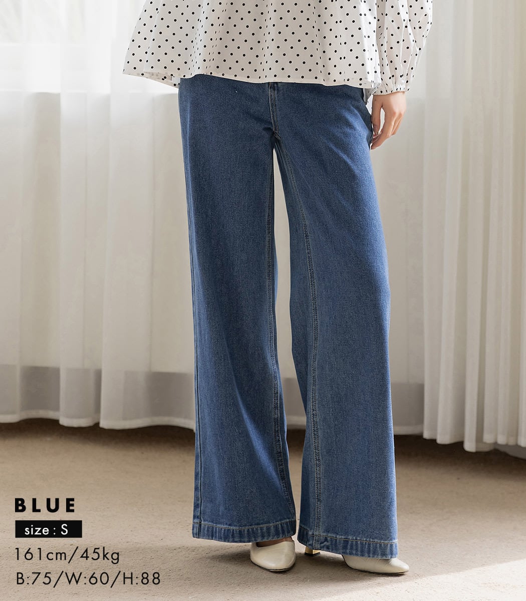【宅配便】 「器用な体型の隠し方」デニム パンツ ワイド ストレート レディース /pants655