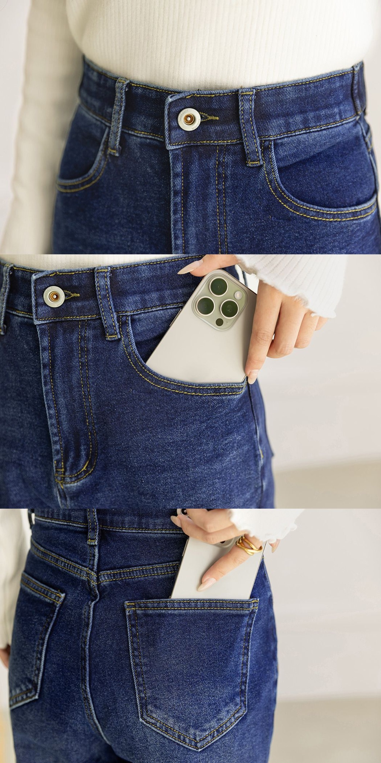 2段階調整可能なウエストボタン付き