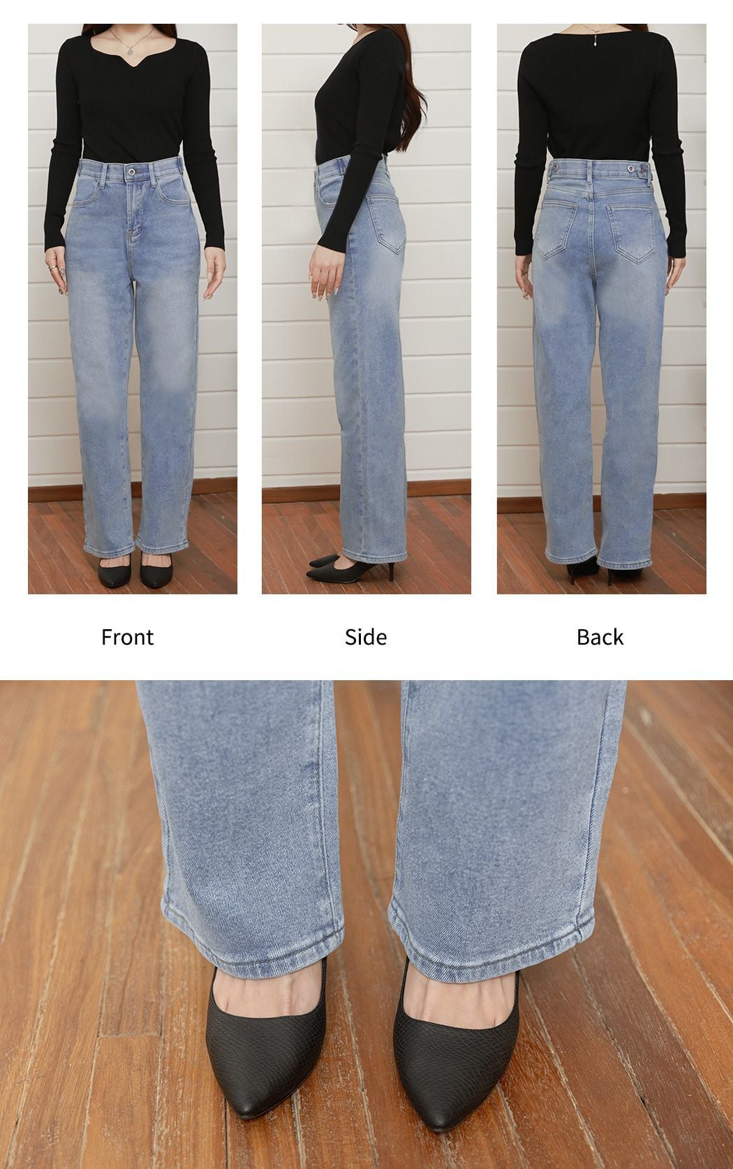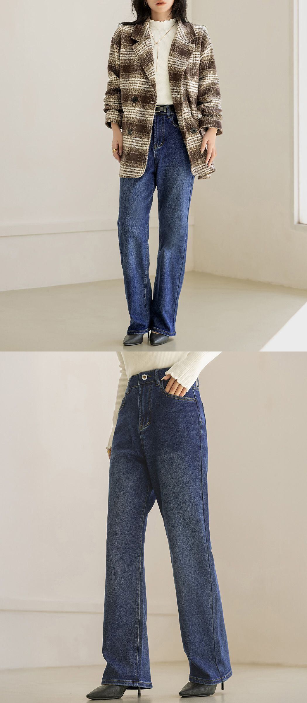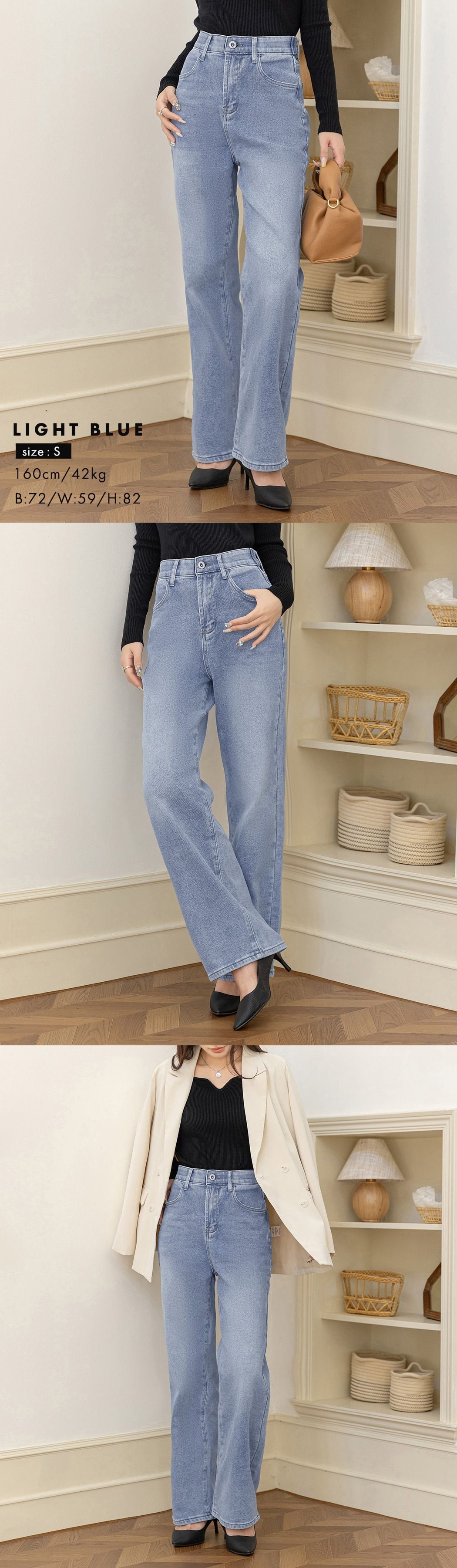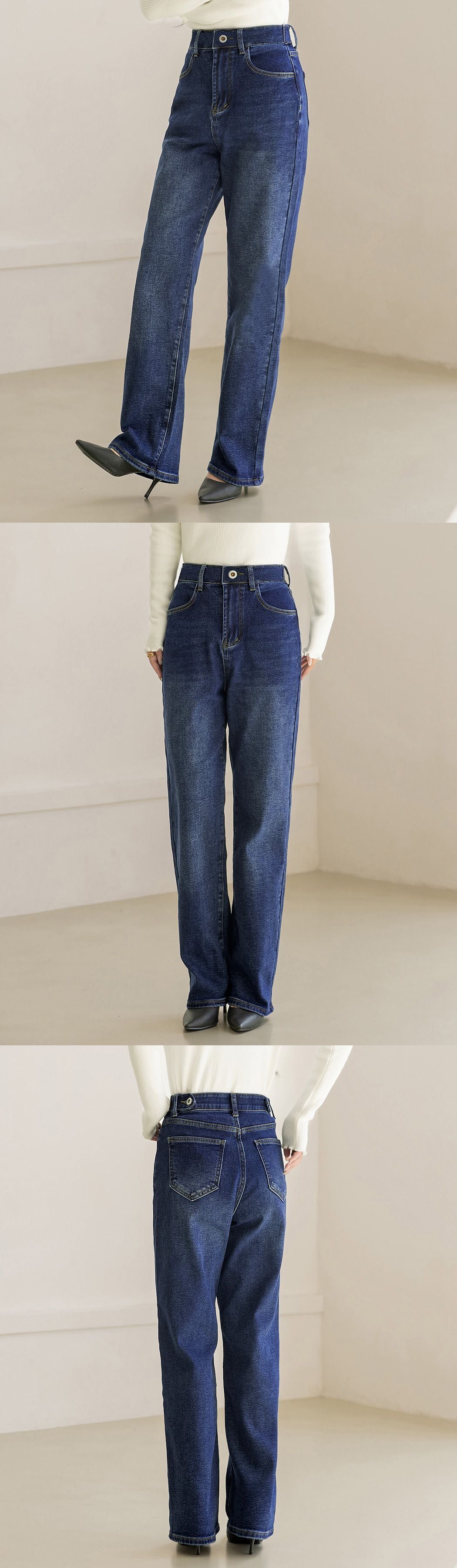 すらっと美脚&ウエスト調整可能なウエストボタン付きストレートデニム