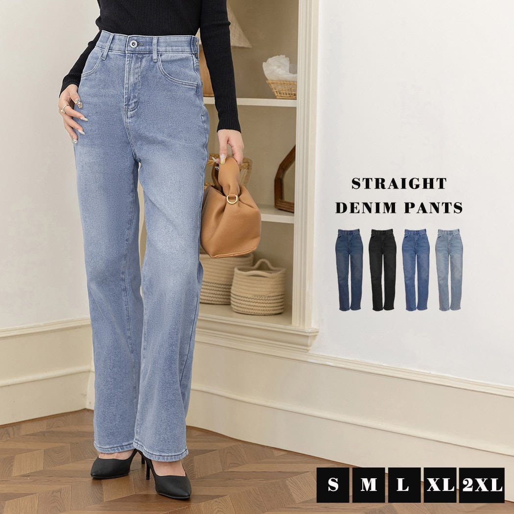 【宅配便】 「バックボタンは映えにも」デニム パンツ ストレート レディース /pants654