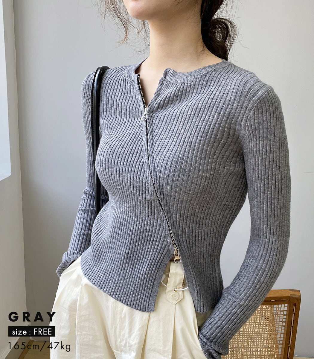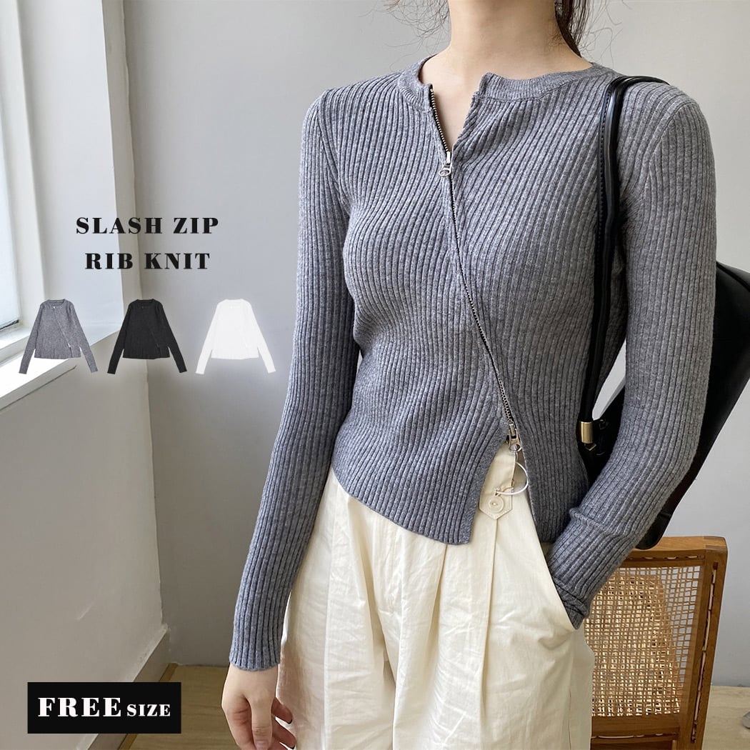 スラッシュジップリブニット