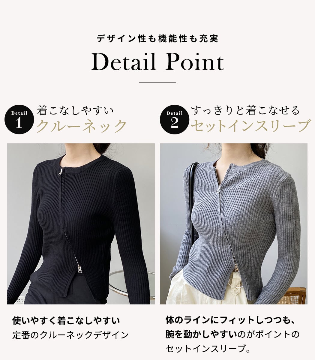 スラッシュジップが特徴の洗練された大人のリブニット。