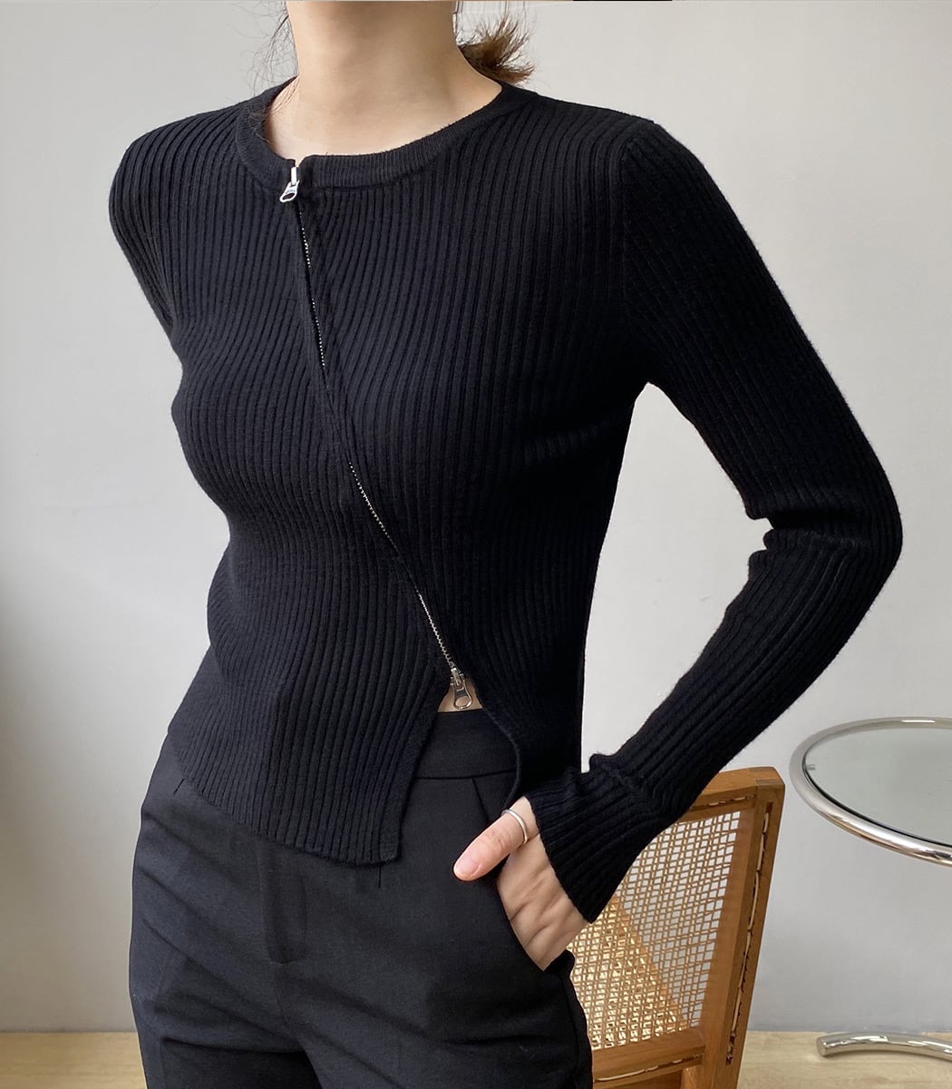 SLASH ZIP RIB KNIT