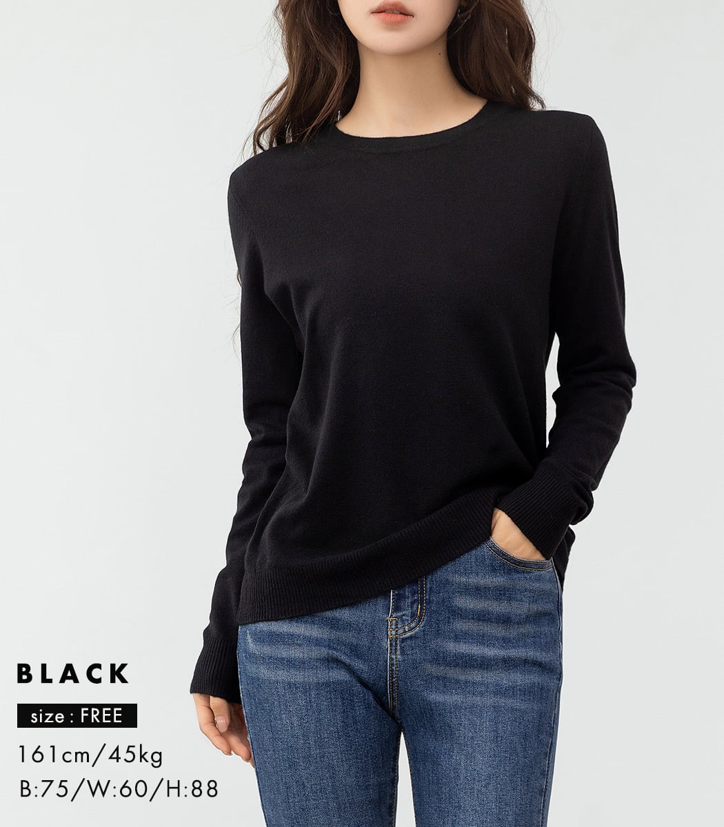 使いやすく着こなしやすい定番のクルーネック。