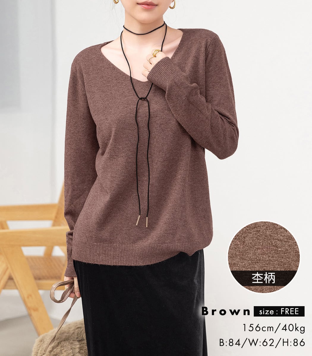 襟ぐりが広めのVネックでデコルテ周りを綺麗見せ♪