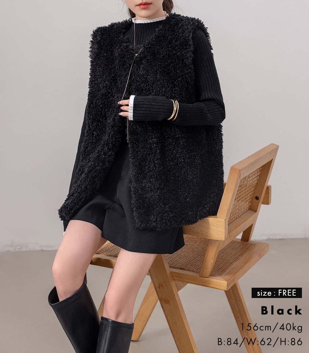 もこもこふわふわなシルエットがかわいいファーベスト。