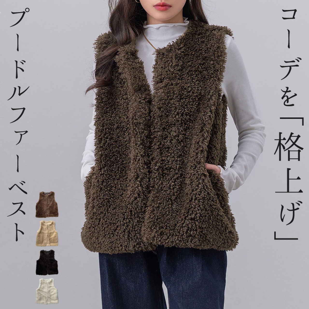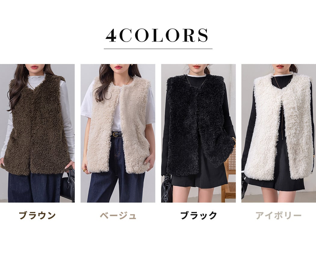 【メール便】「ふわふわプードルファーで愛されコーデ!」 レディース トップス ファーベスト コーデ/tops2191