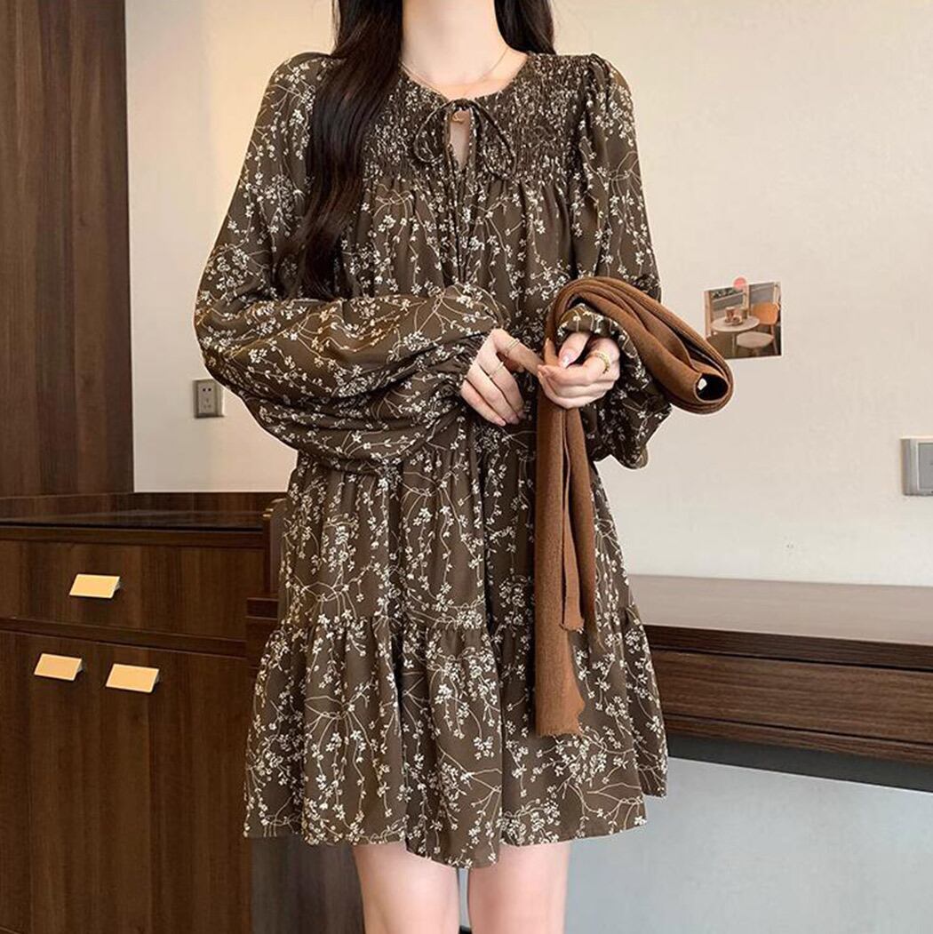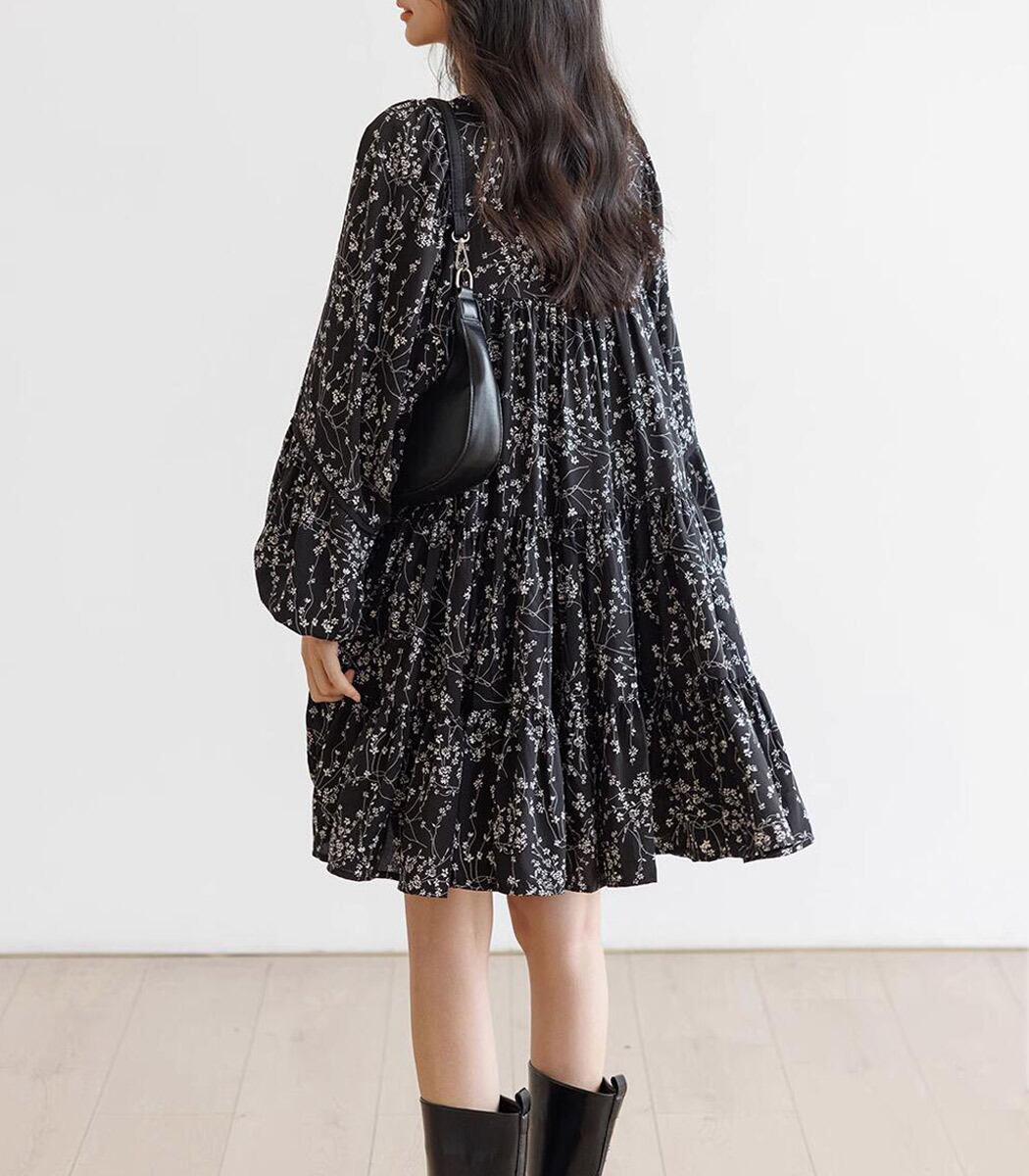 【メール便】「甘すぎないフェミニンワンピ」ティアードワンピース 長袖 ミニ きれいめ レディース/tops2195