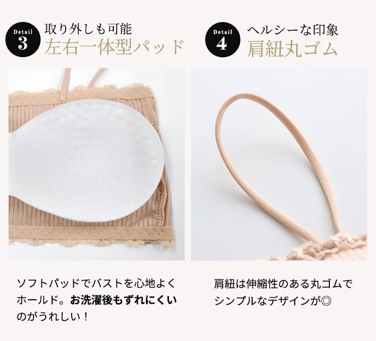 ソフトパッドでバストを心地よくホールド。