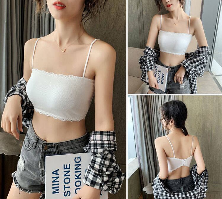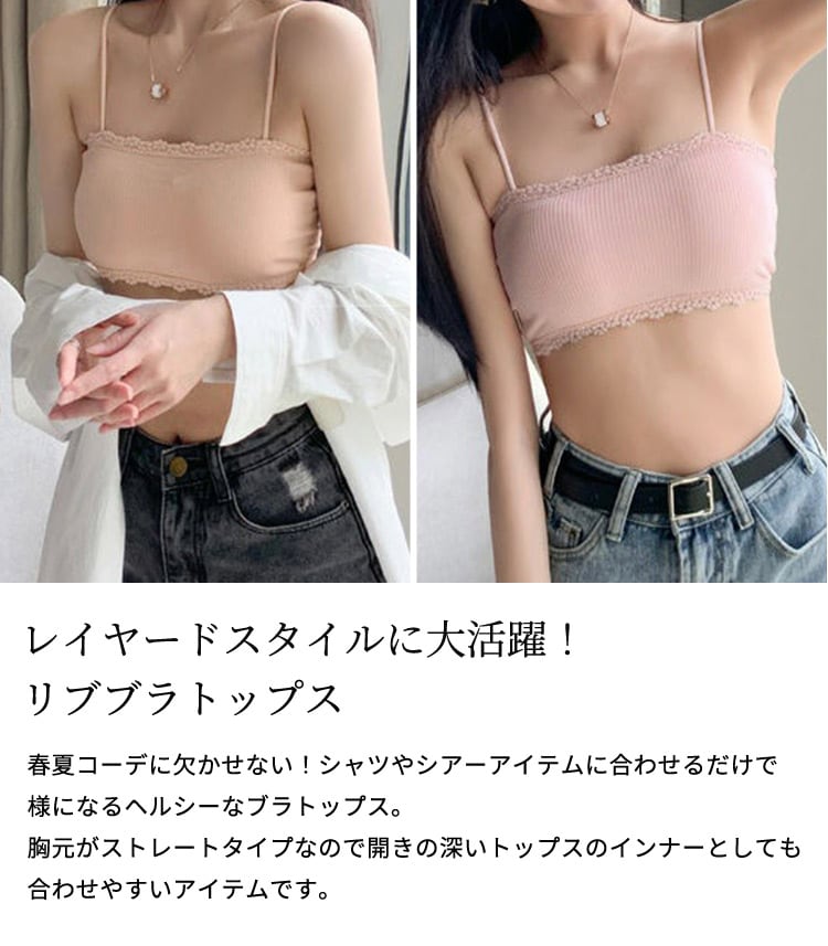 【メール便】「垢抜けレイヤードコーデに!」ブラトップ キャミソール ショート丈 トップス パッド付き/tops2203