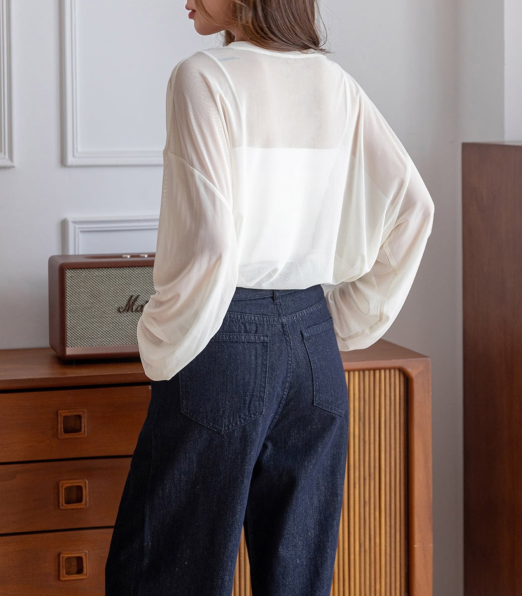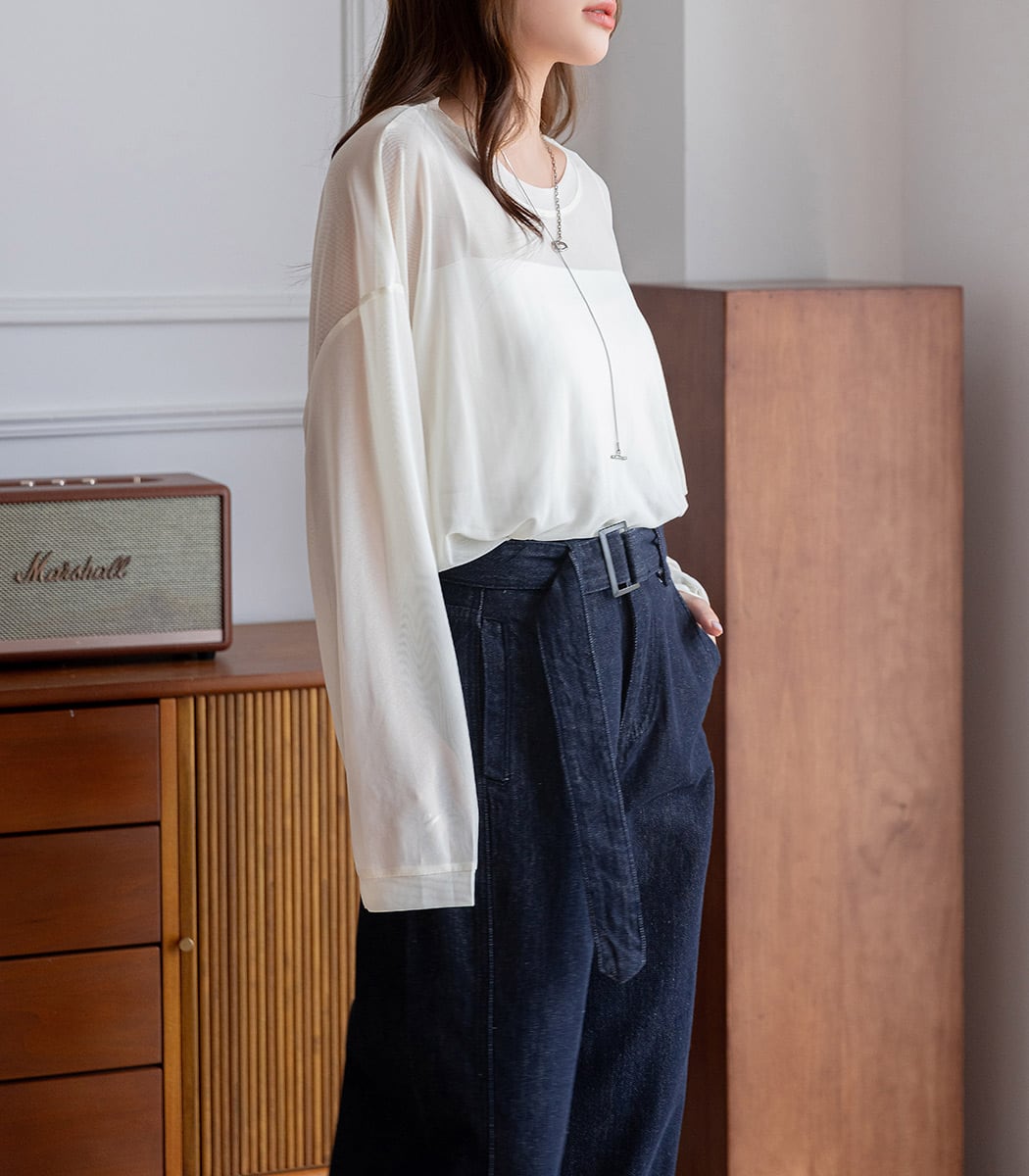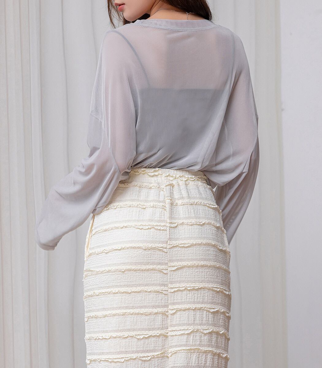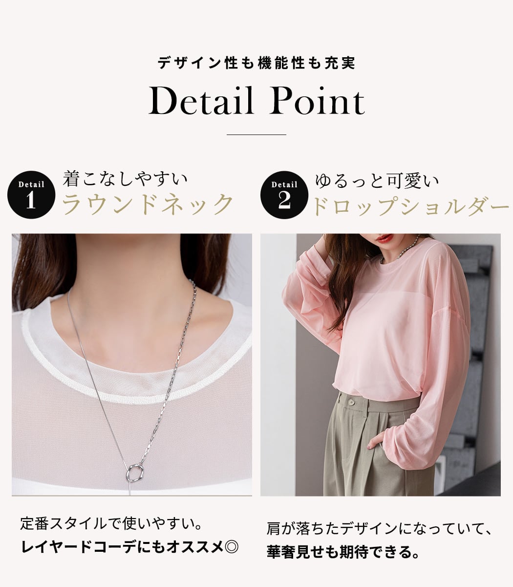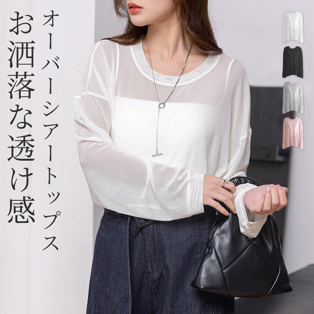 【メール便】「ドロップショルダーでふんわり倍増」カットソー 長袖 レディース シアー シースルー/tops2204