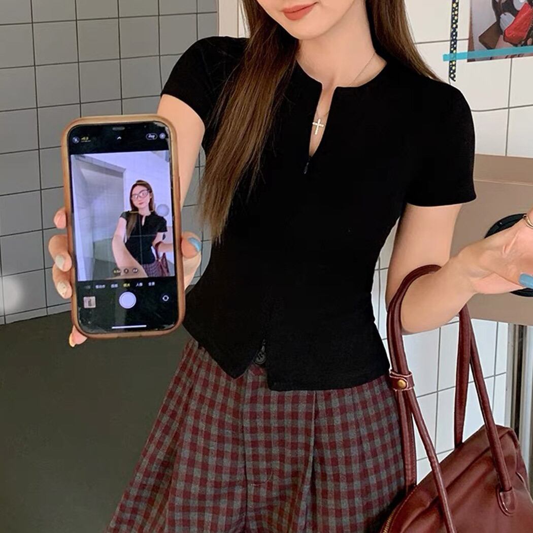 ジップを少し開けて抜け感を出し、お洒落に着こなせる