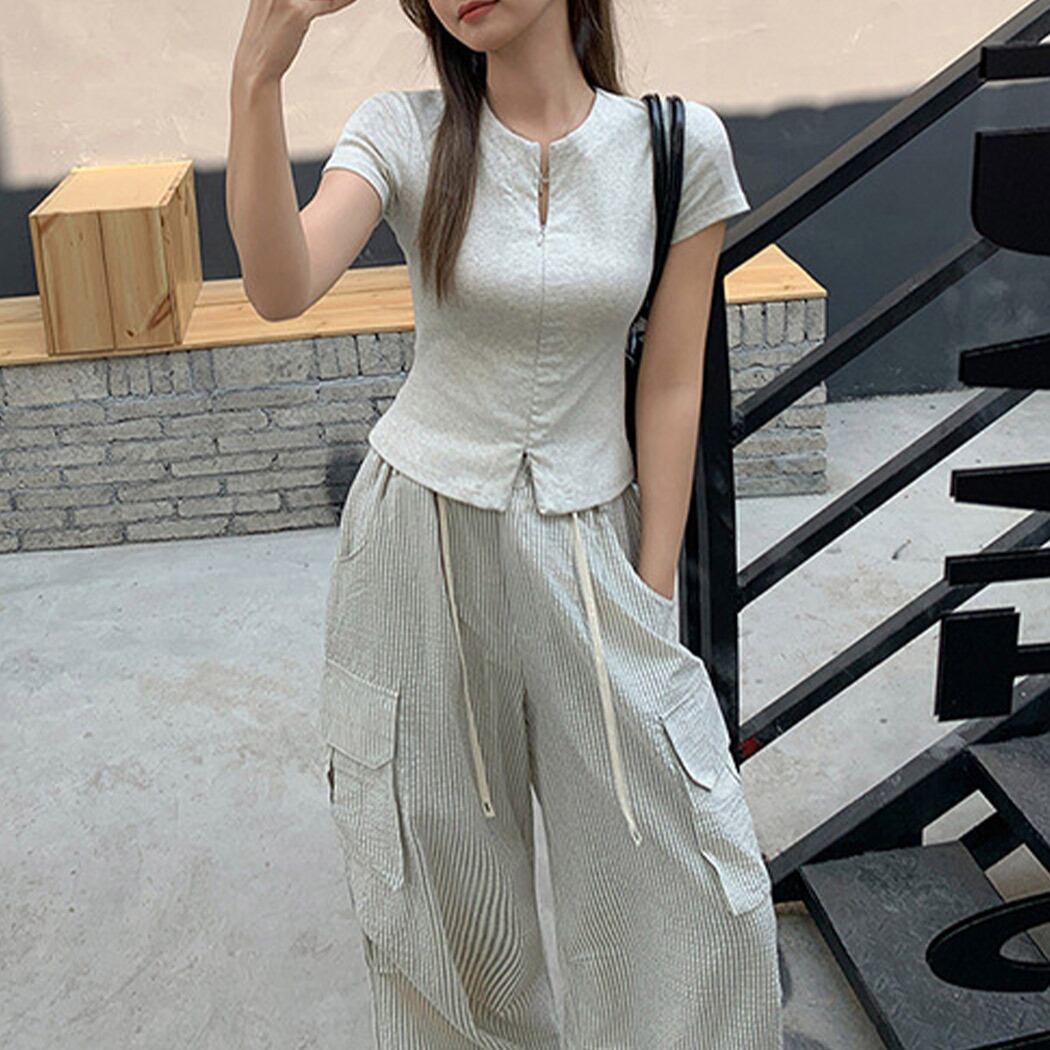 【メール便】「ちょいアレンジでこなれ感+」ニット 半袖 レディース トップス クロップド丈/tops2206
