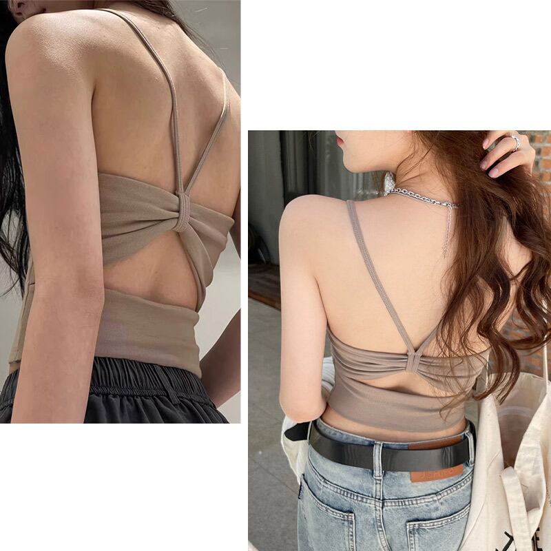 【メール便】「背中魅せバックシャンキャミ」キャミソール カップ付き ブラトップ スクエア ネック/tops2207