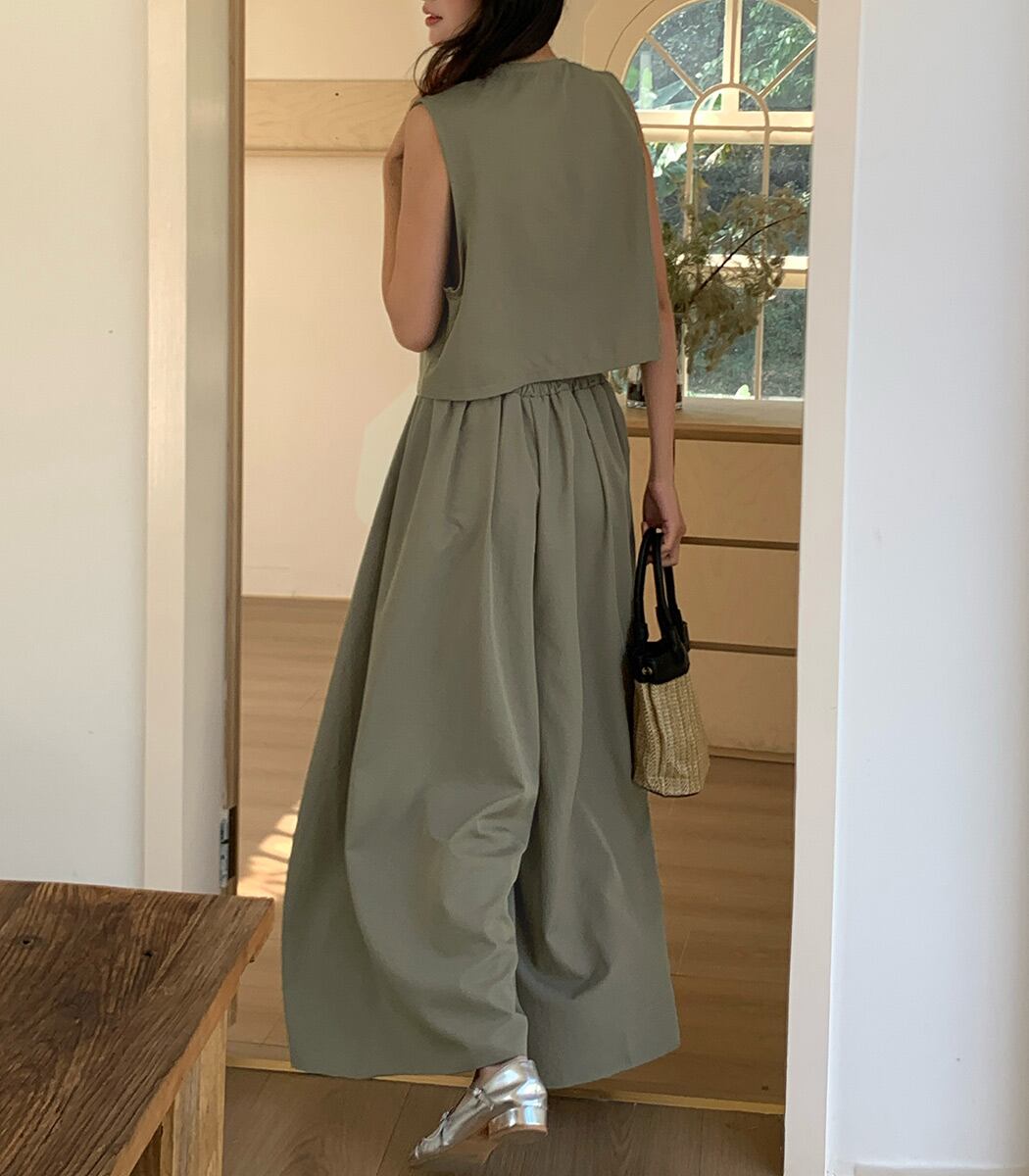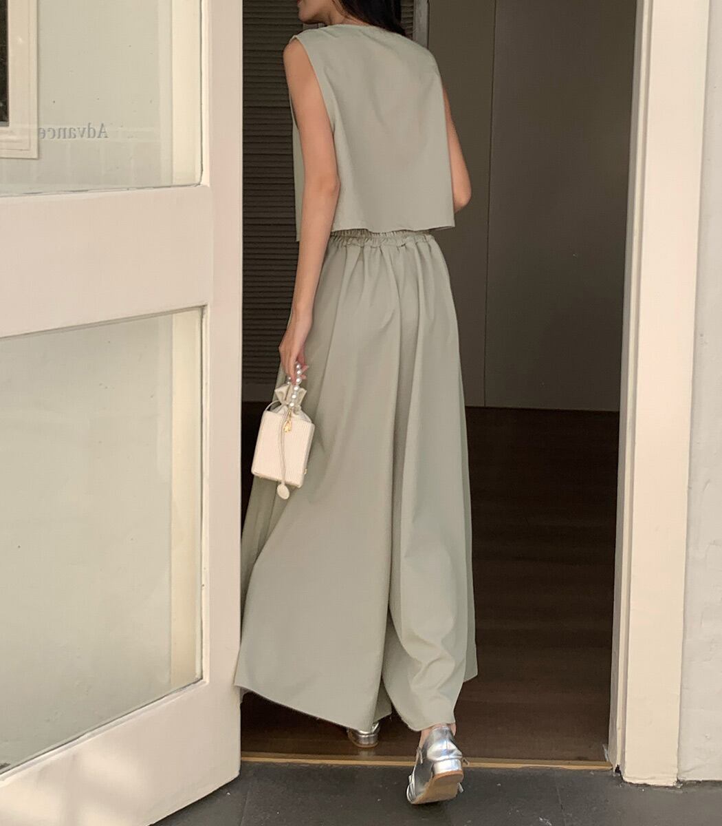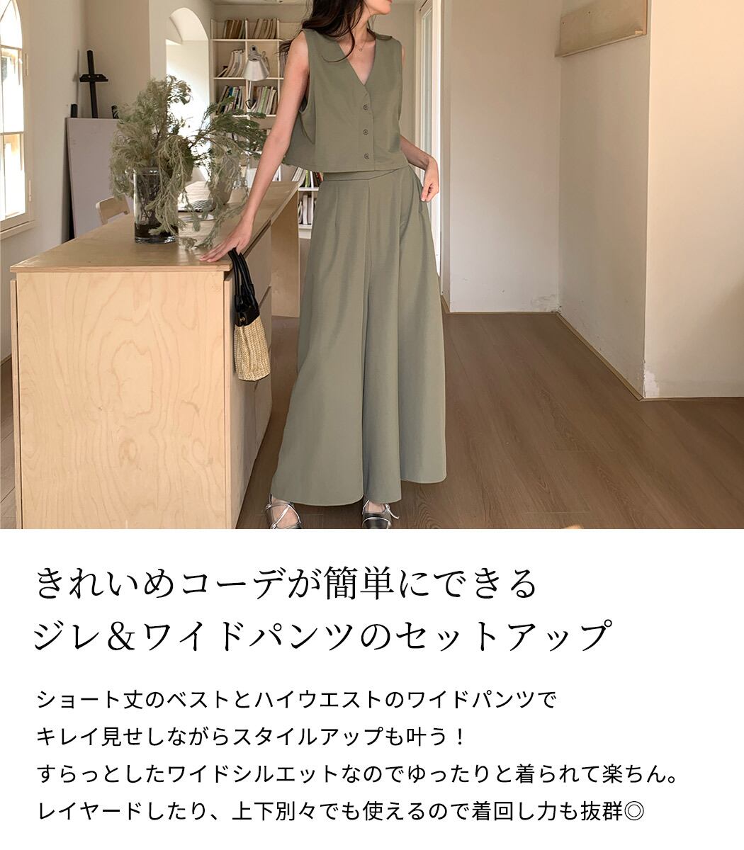ジレ&ワイドパンツのセットアップ