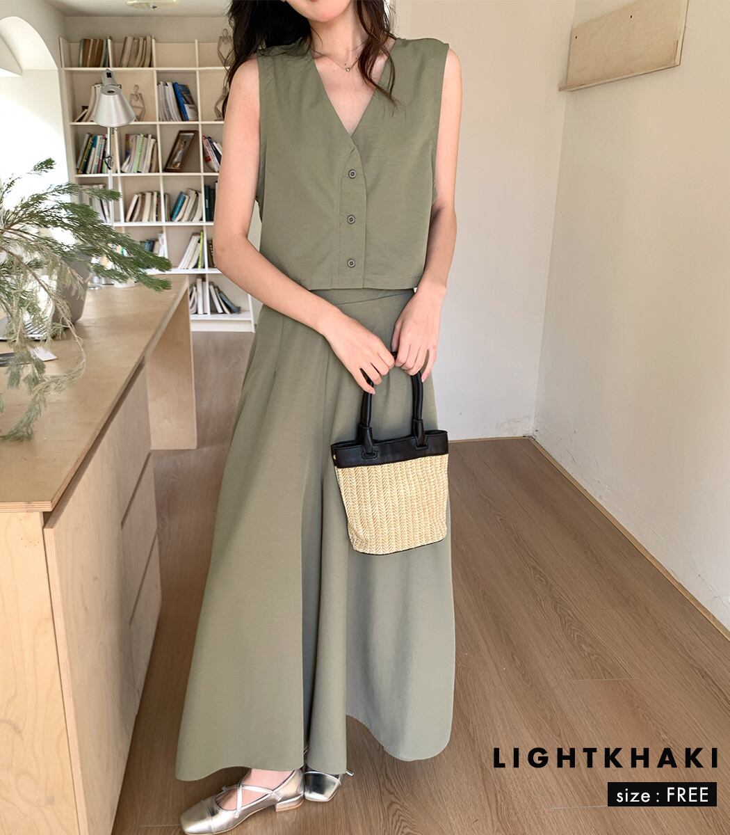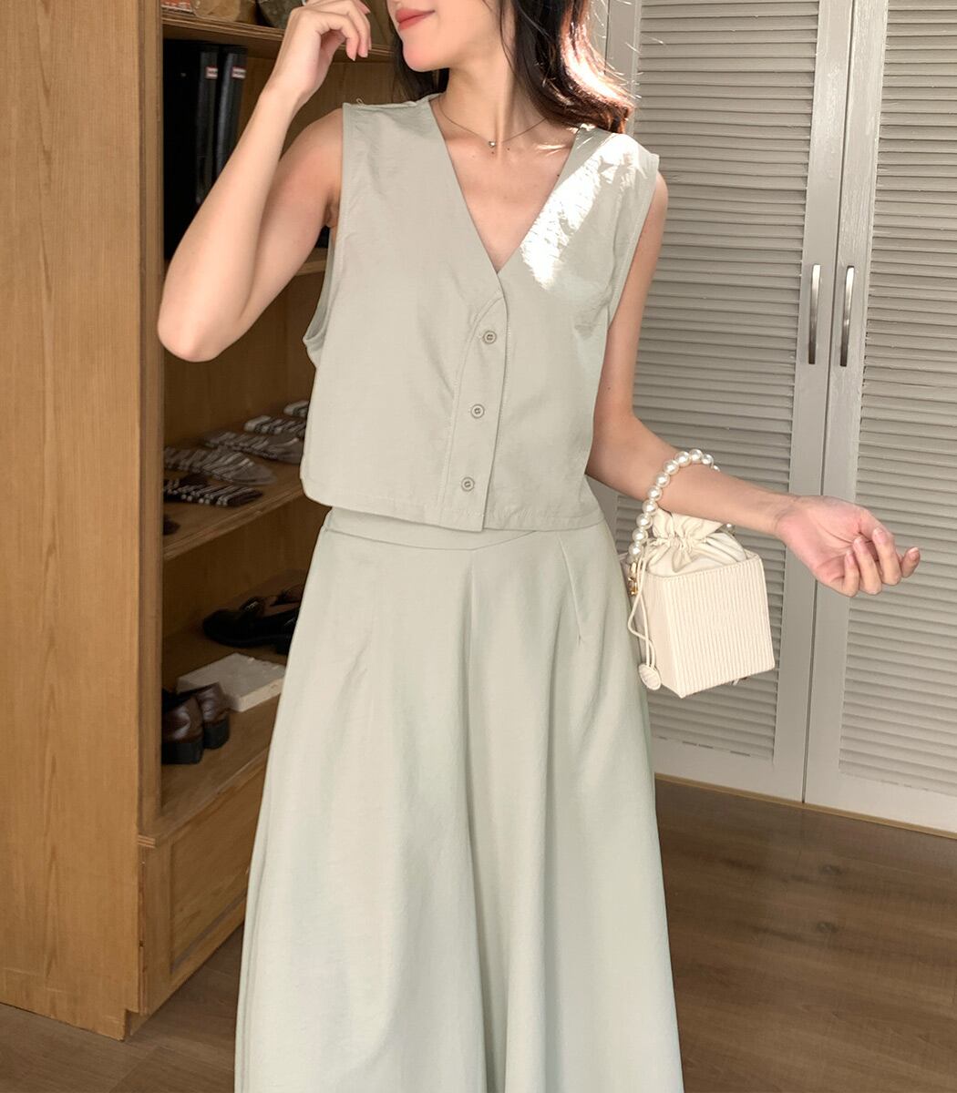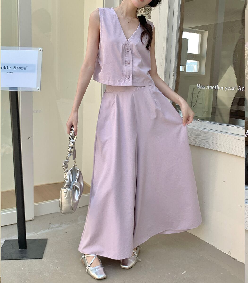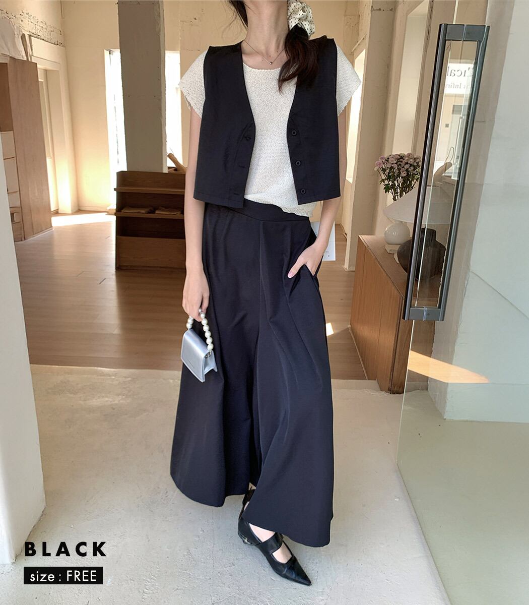 ジレ&ワイドパンツのセットアップ