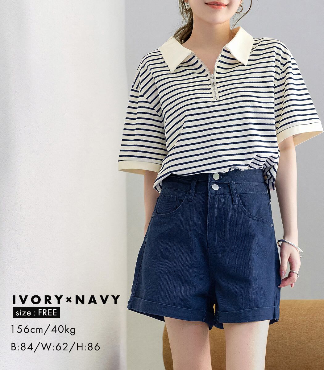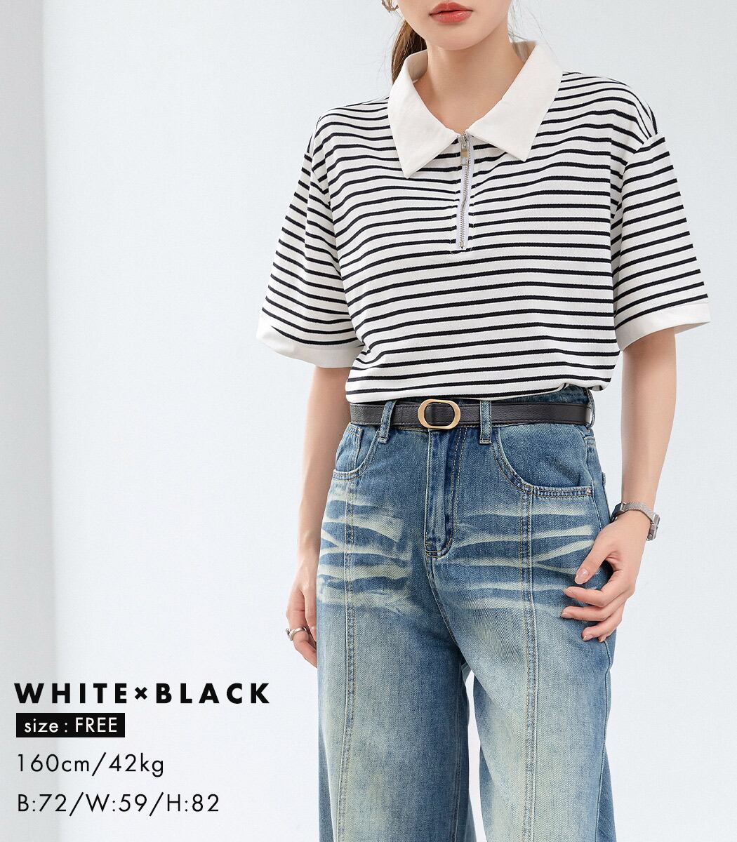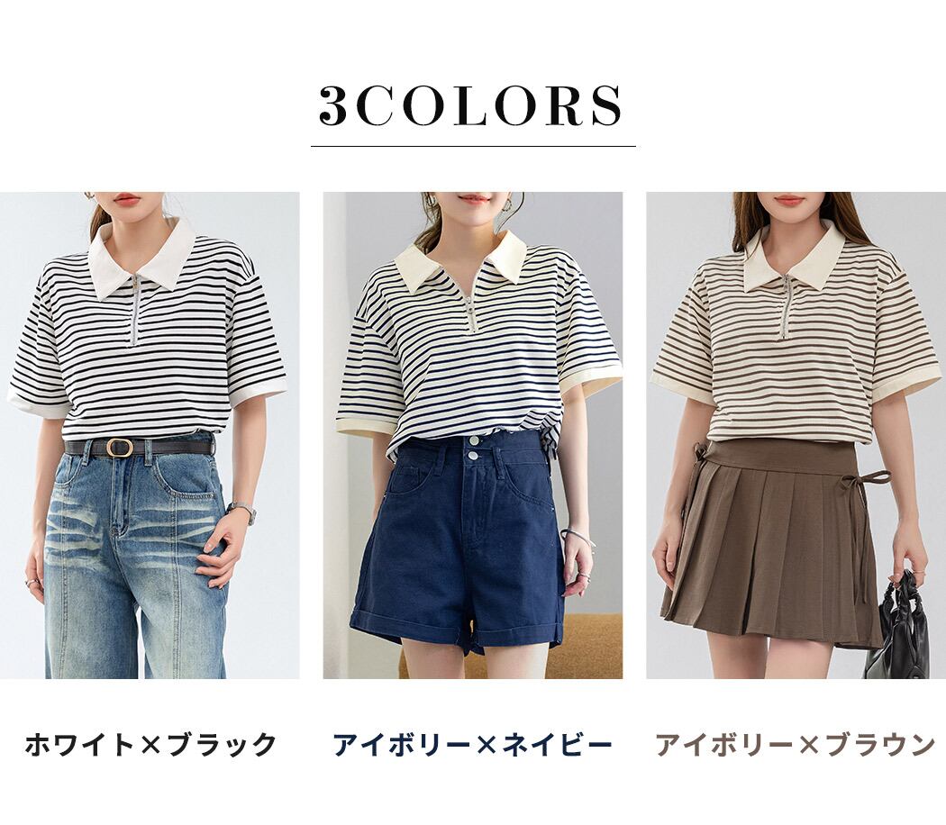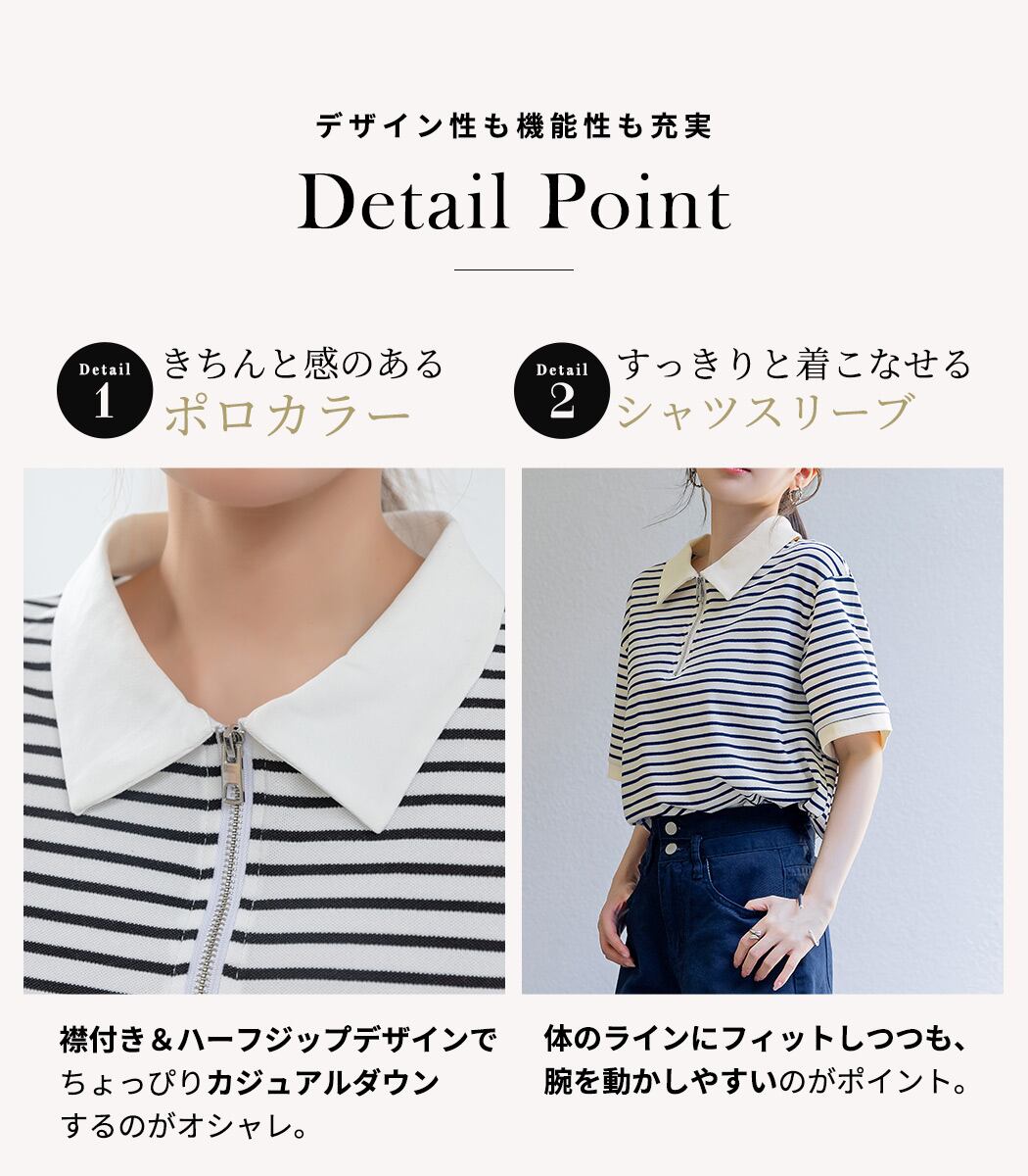 【メール便】「ハーフジップ投入で今っぽ更新」ポロシャツ Tシャツ レディース トップス 半袖/tops2216