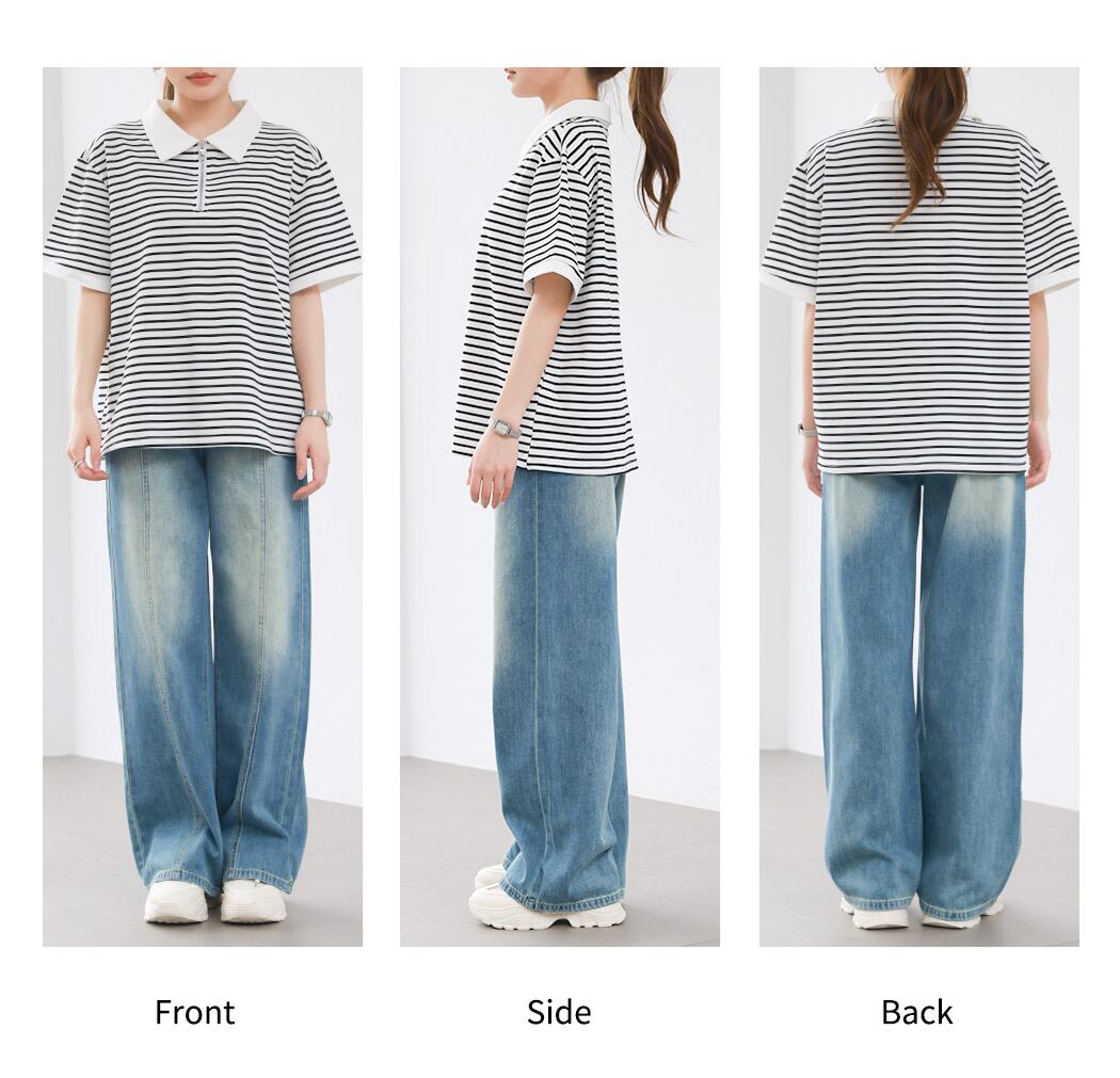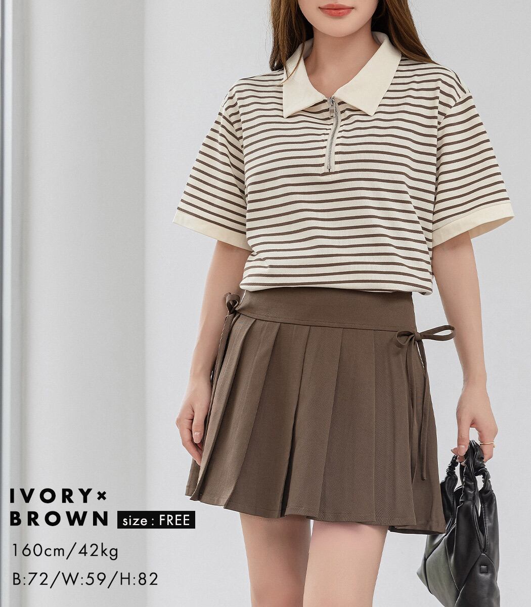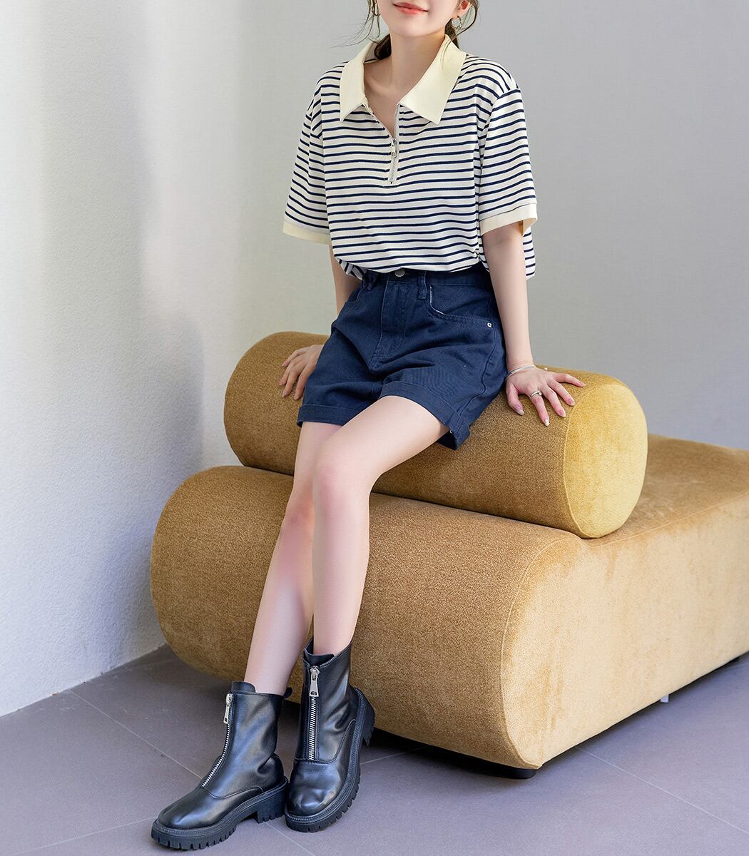 【メール便】「ハーフジップ投入で今っぽ更新」ポロシャツ Tシャツ レディース トップス 半袖/tops2216