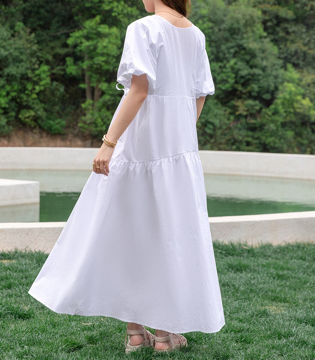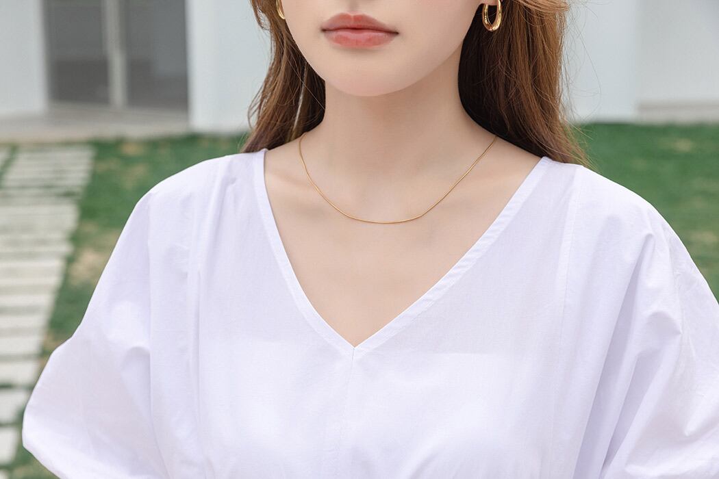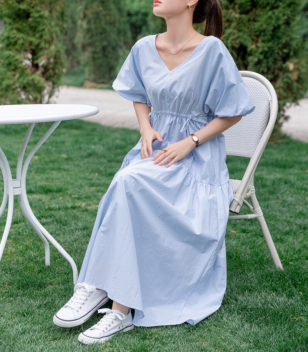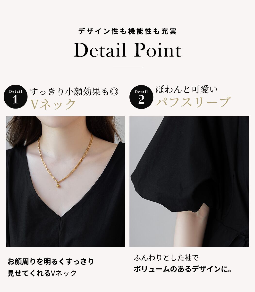 ぽわんとした袖とVネックで大人フェミニンな印象に。