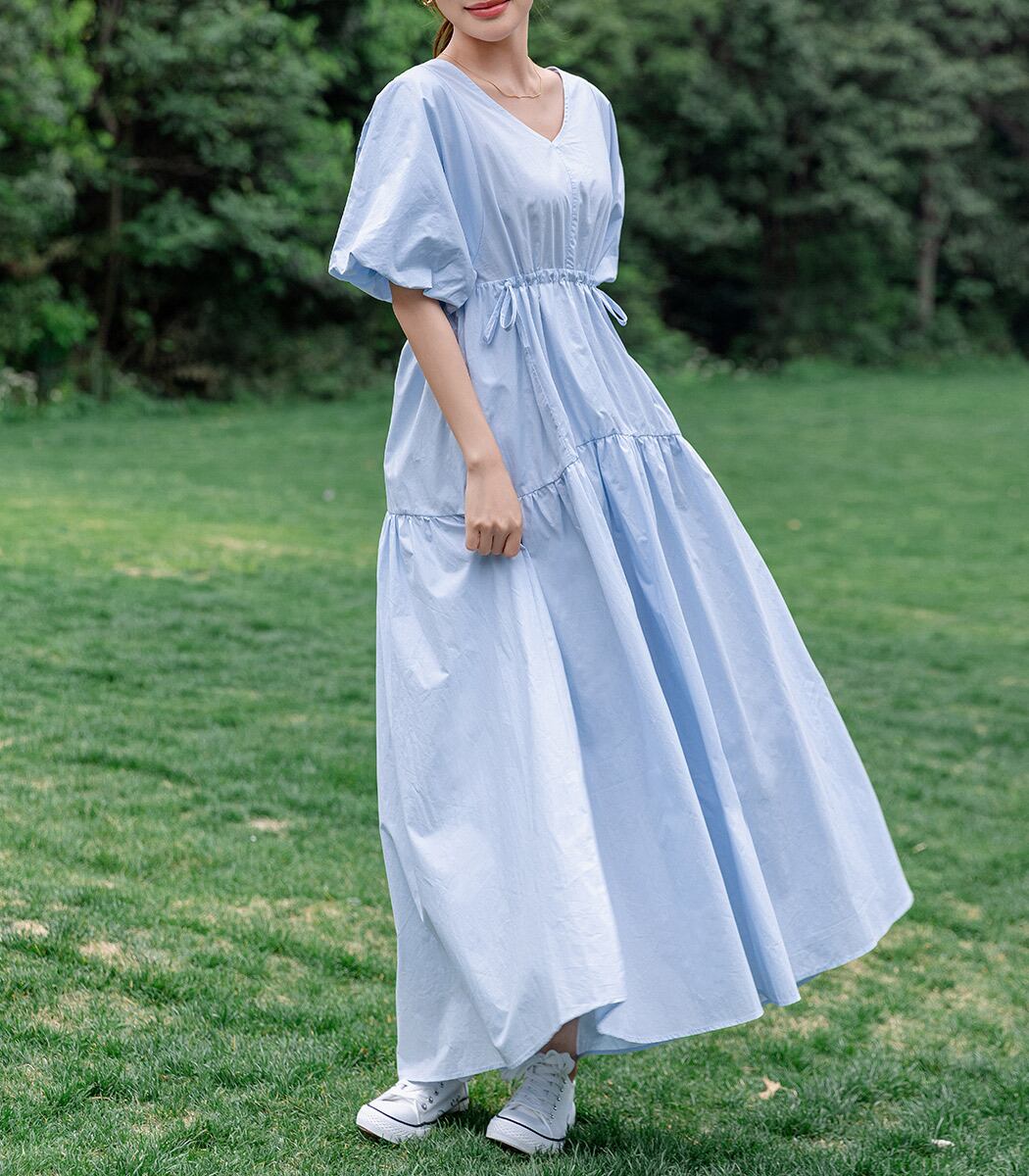 【メール便】「二の腕も足もふわりカバー」ワンピース フレア 半袖 レディース ゆったり/tops2221