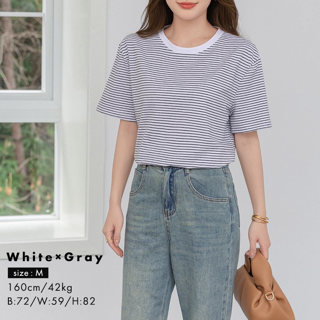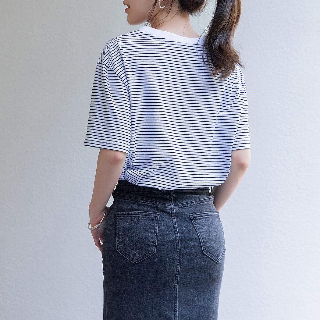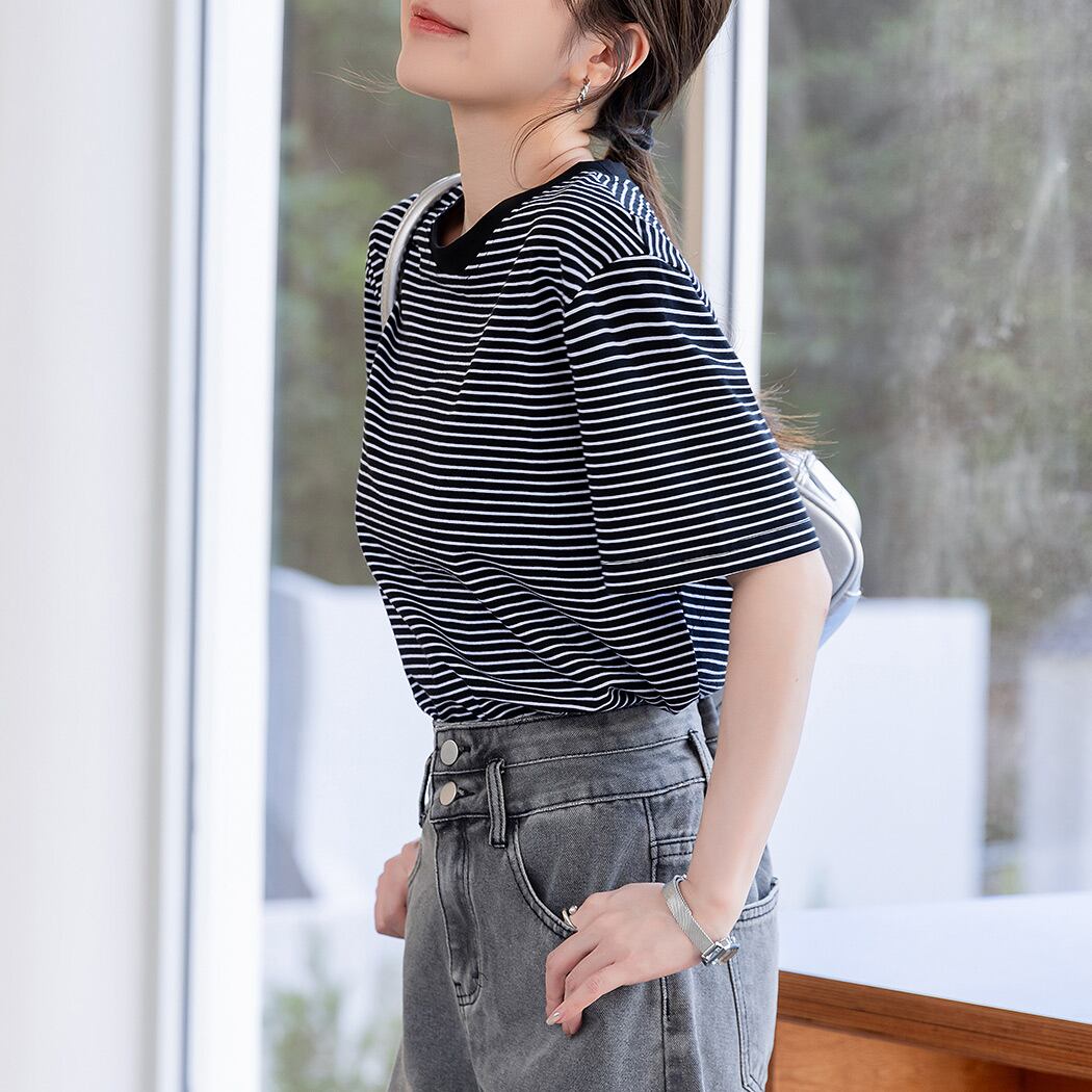シンプルでお洒落な細ボーダーTシャツ