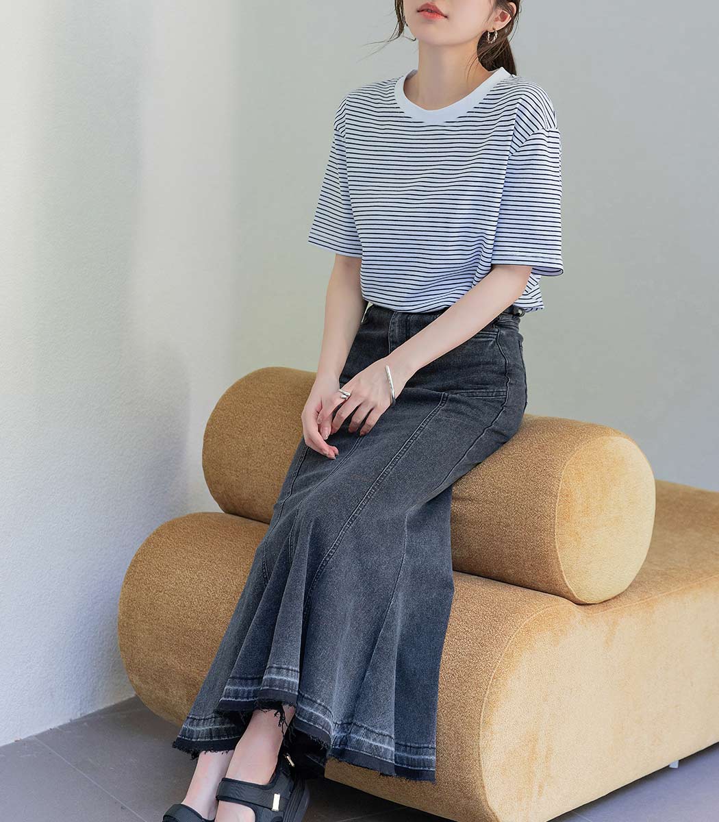 合わさった細ボーダーで大人なコーデに。