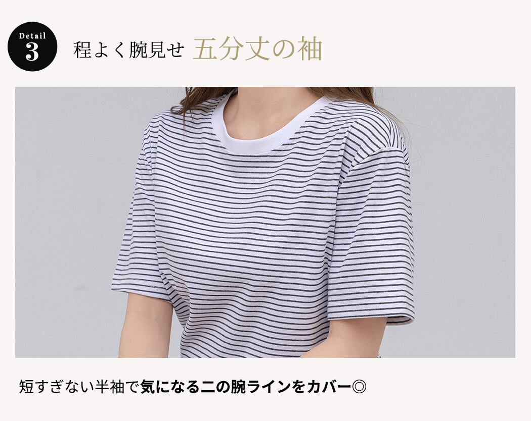短すぎない半袖で気になる二の腕ラインをカバー◎