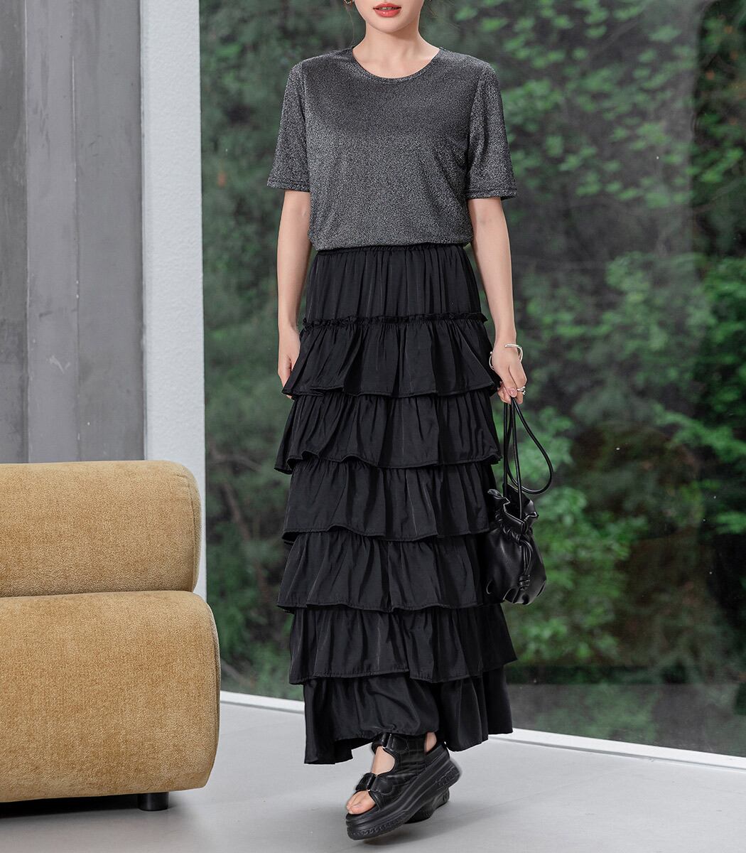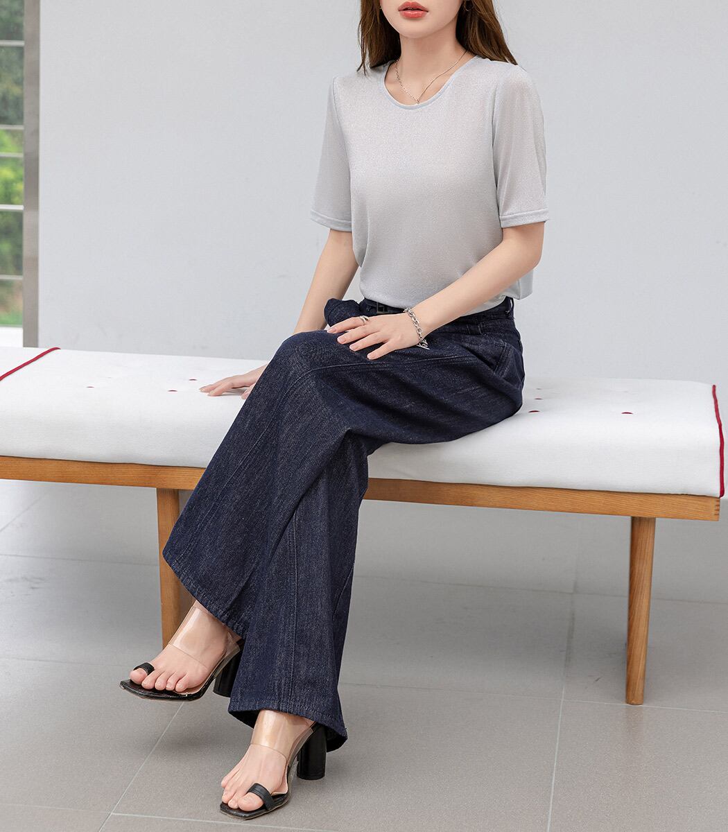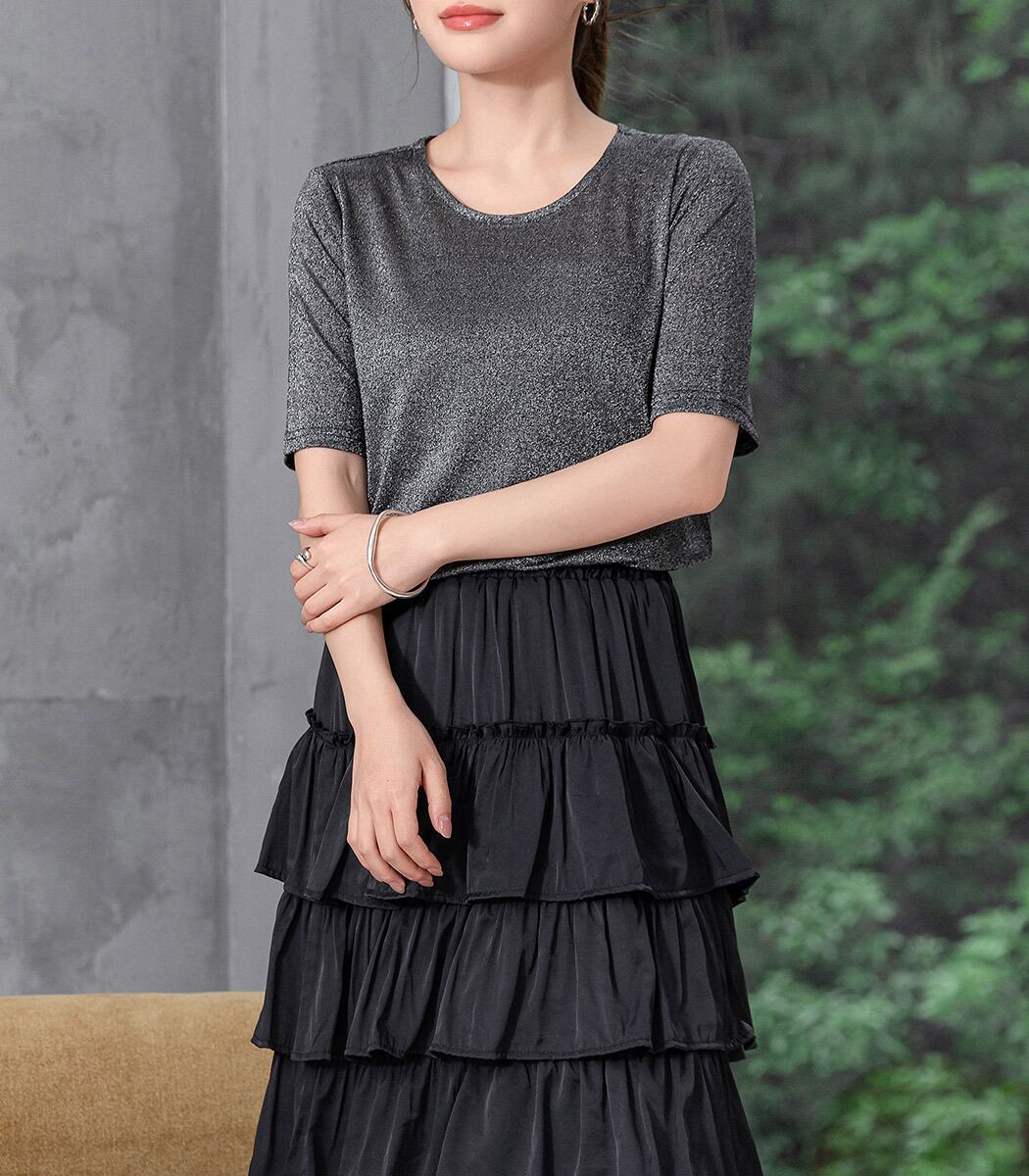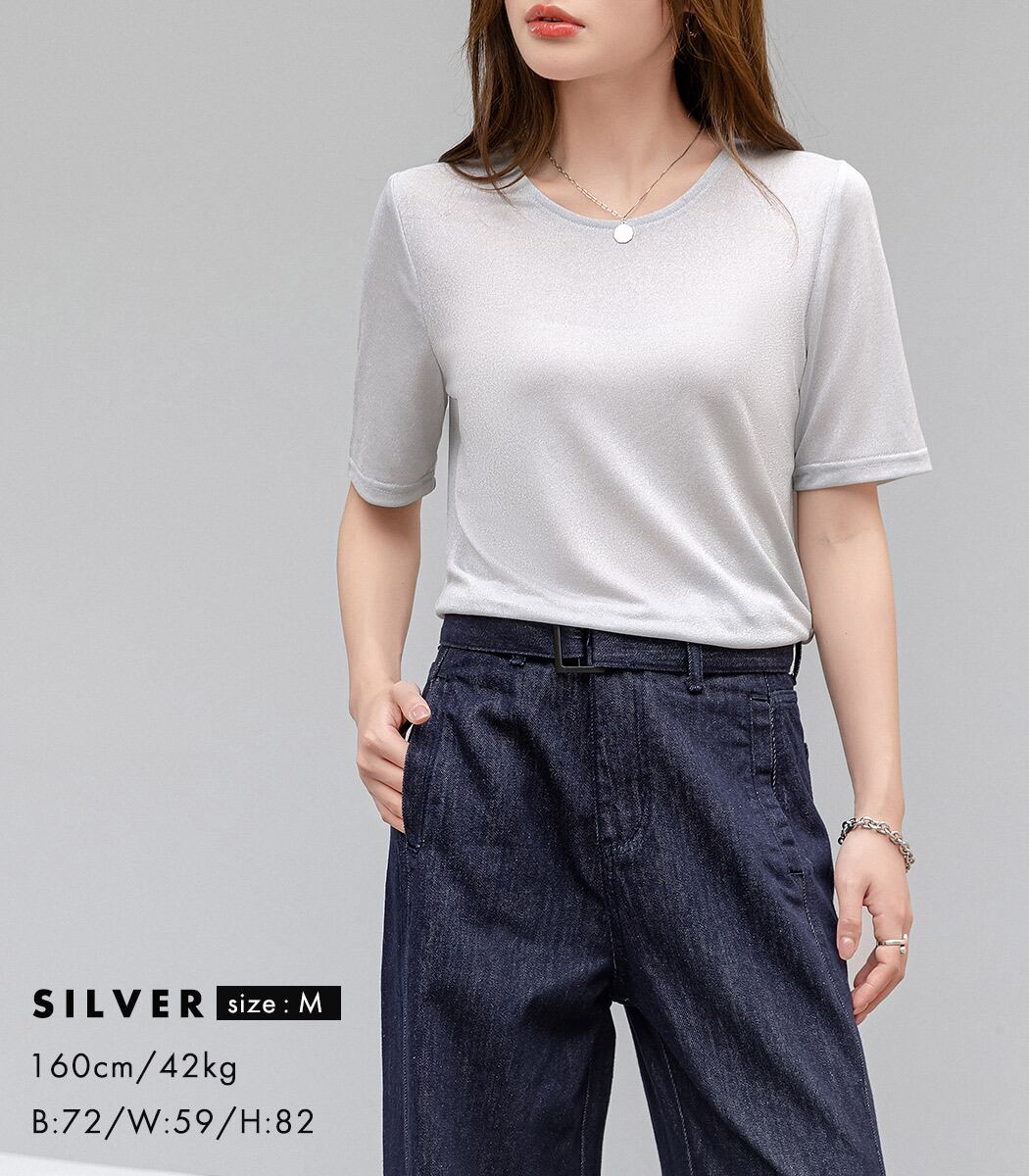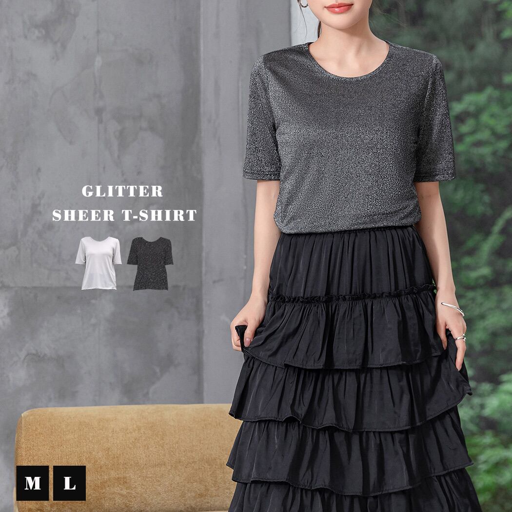 今っぽい透け感&きらめくラメでコーデを華やかな印象に。