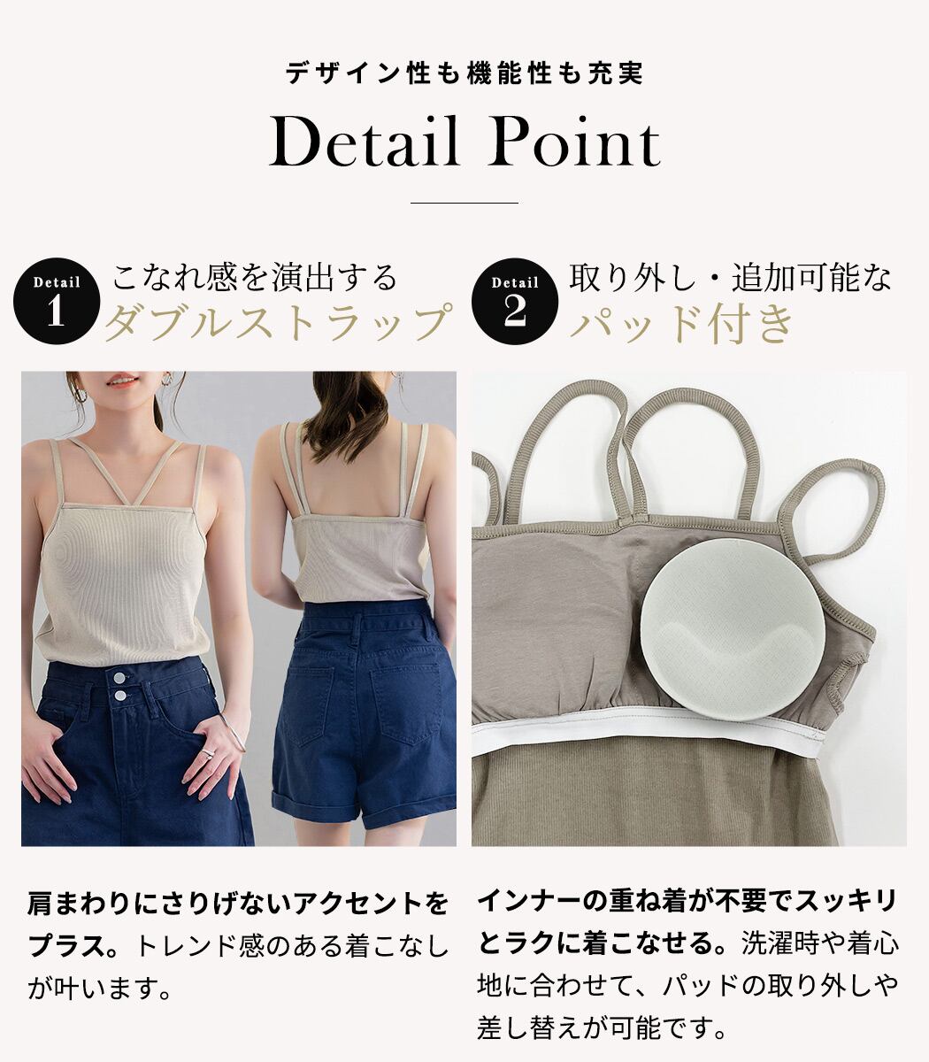 【メール便】「レイヤードコーデに」キャミソール パッド付き 入れ替え可 トップス レディース/tops2238