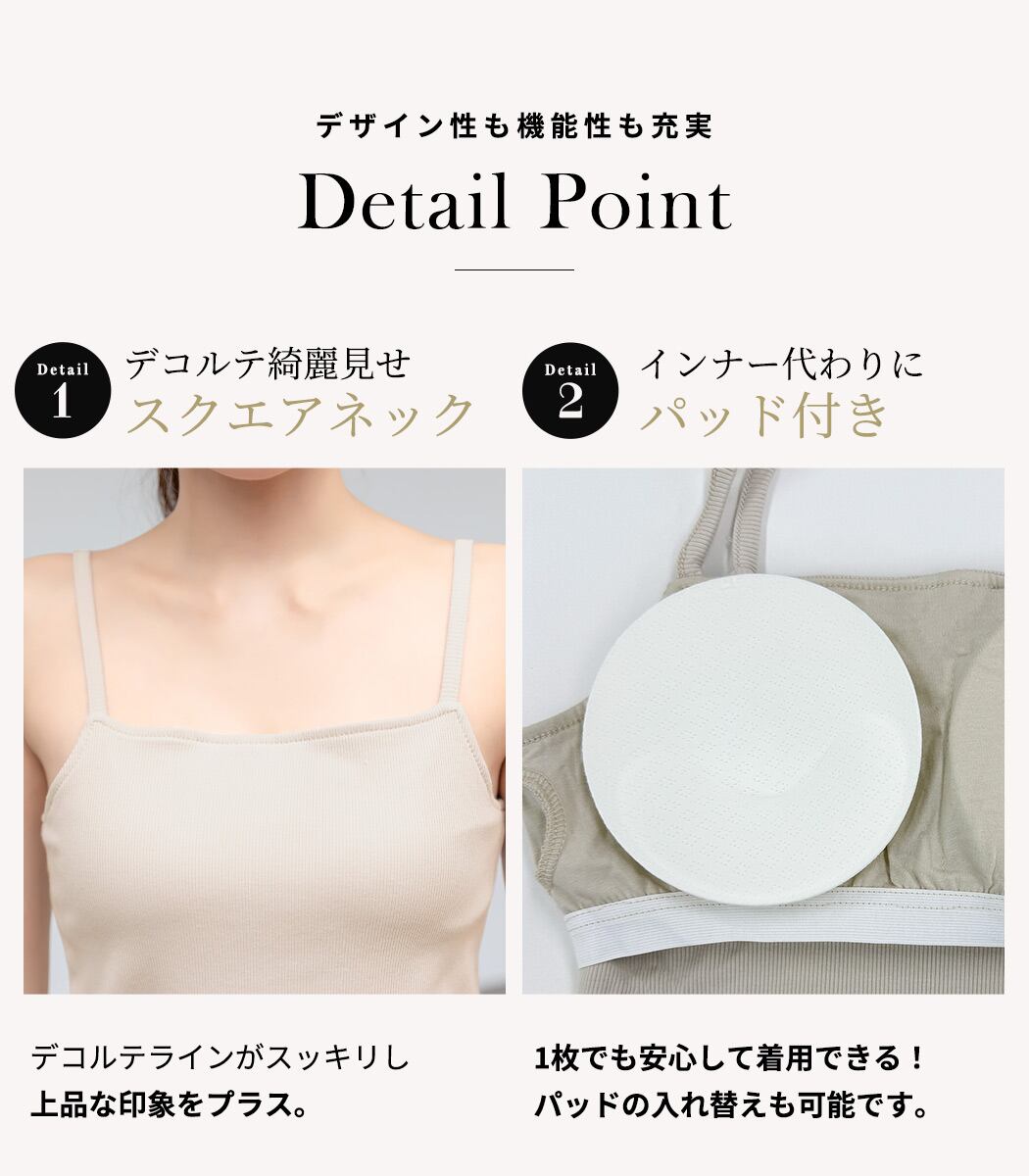 これ1枚でも着用できる主役級のパッド付きキャミ。