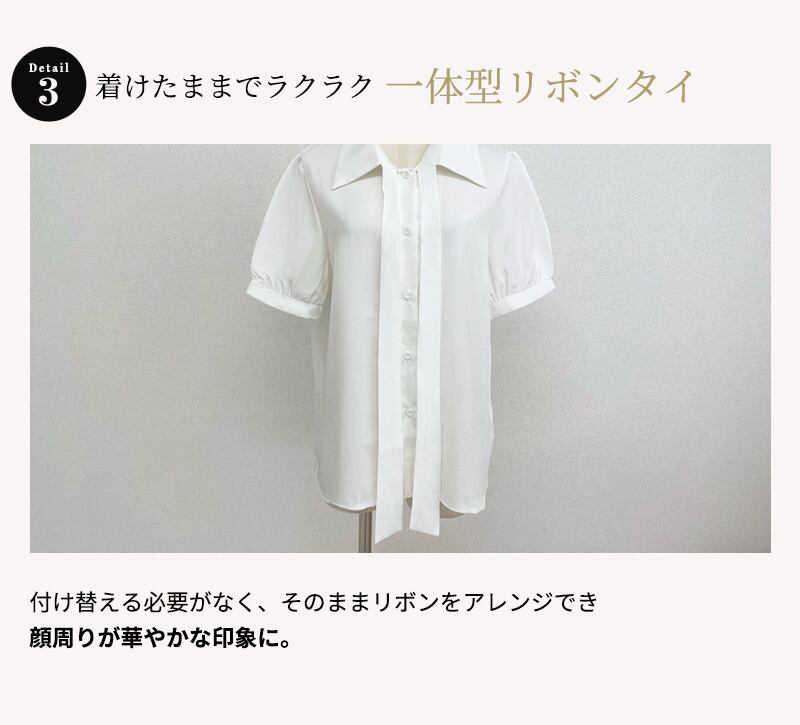 大人ガーリーな雰囲気漂うリボン一体型ブラウス