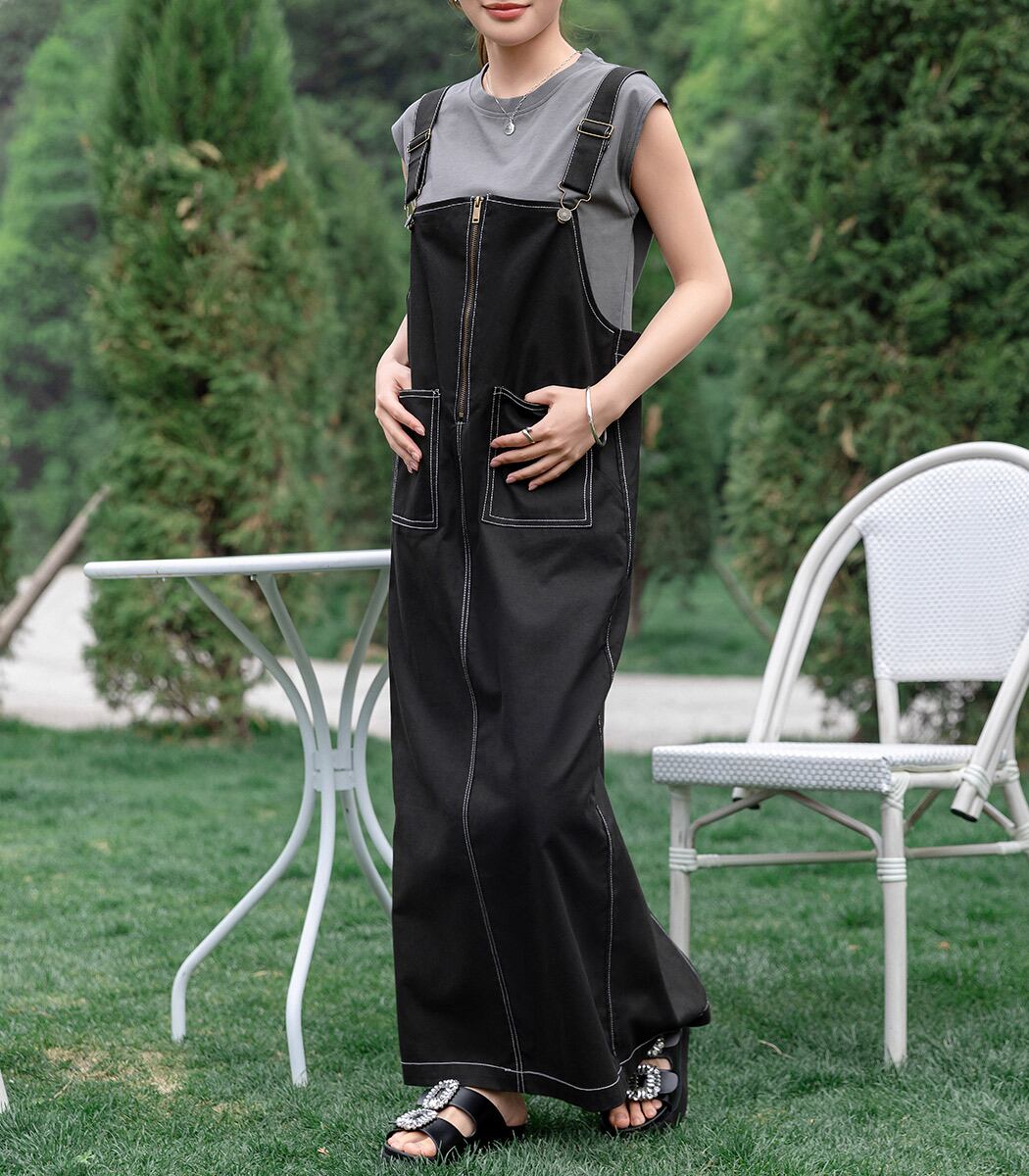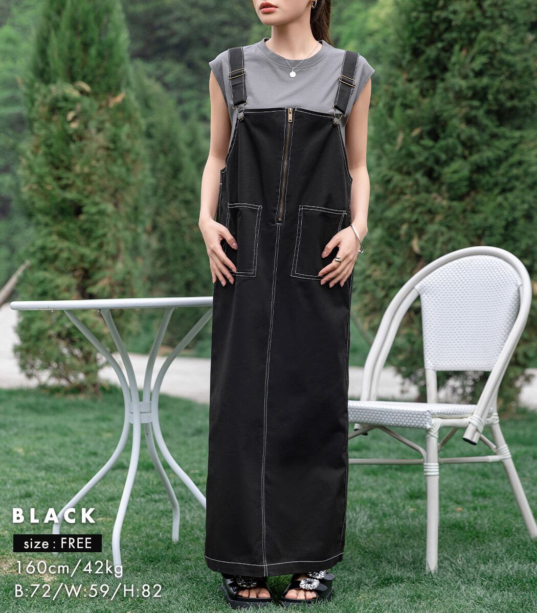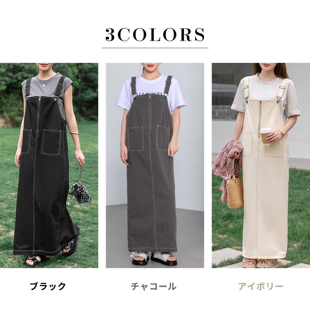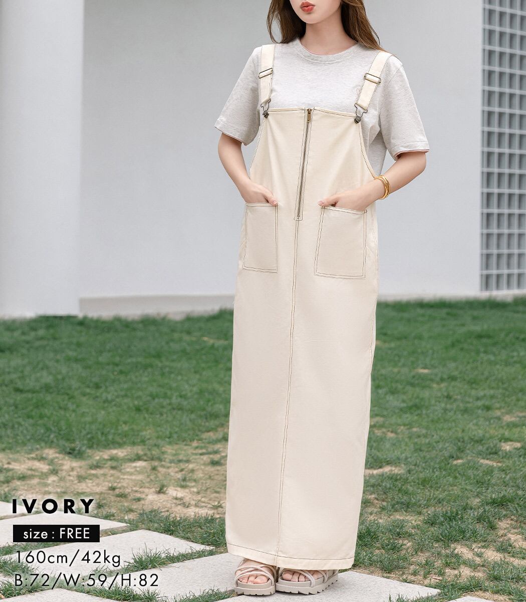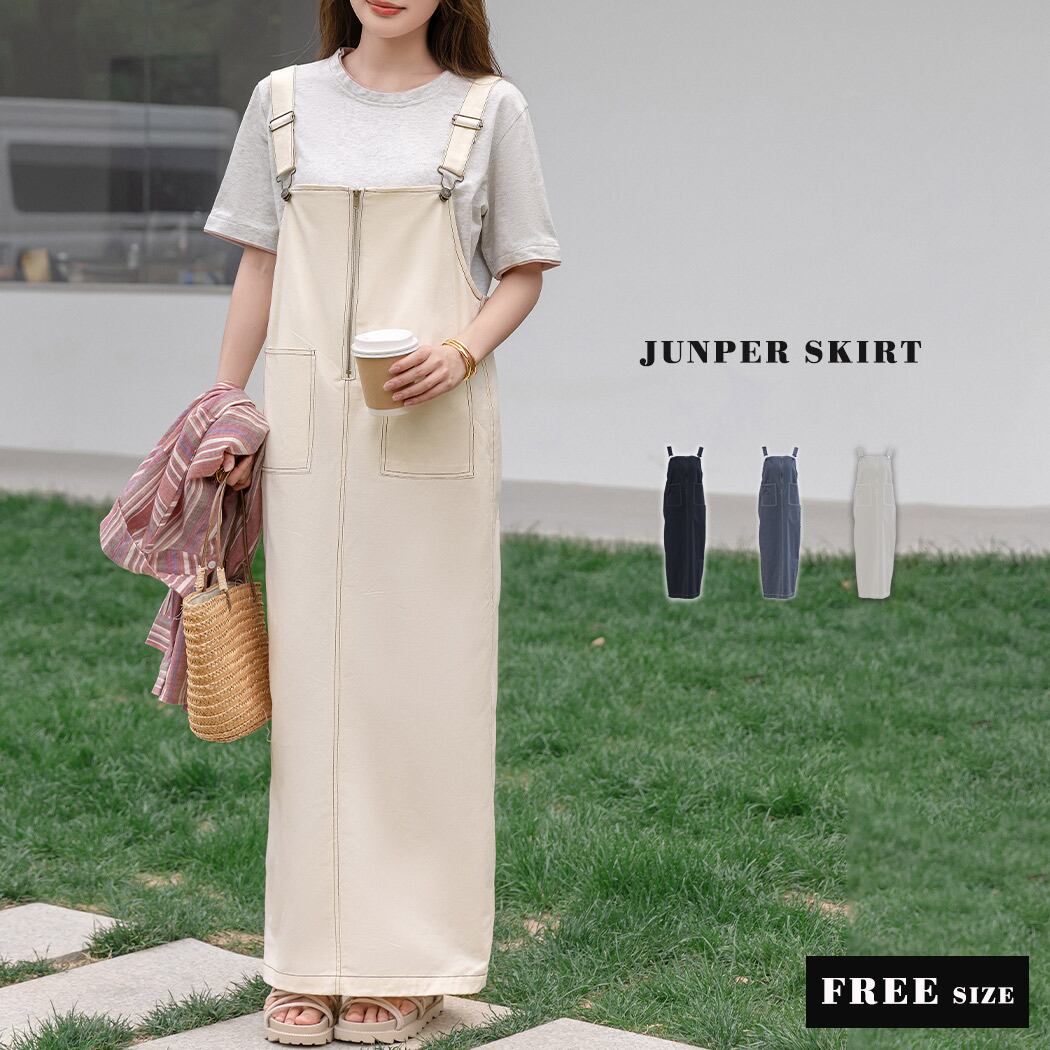 【メール便】「開け閉めで印象変わる」ジャンパースカート レディース 大人 マキシ丈 ゆったり/tops2243