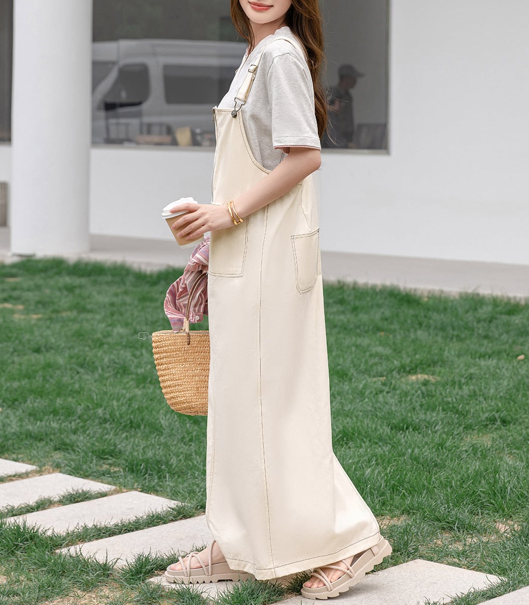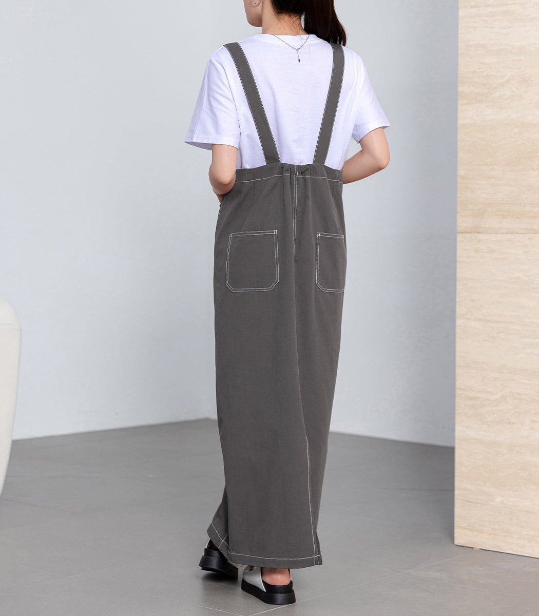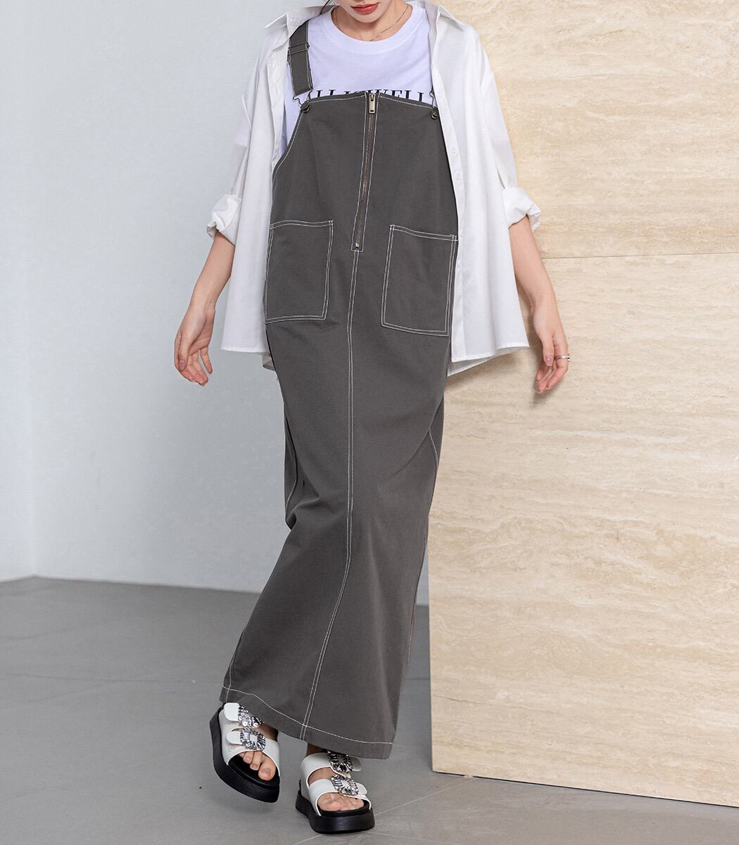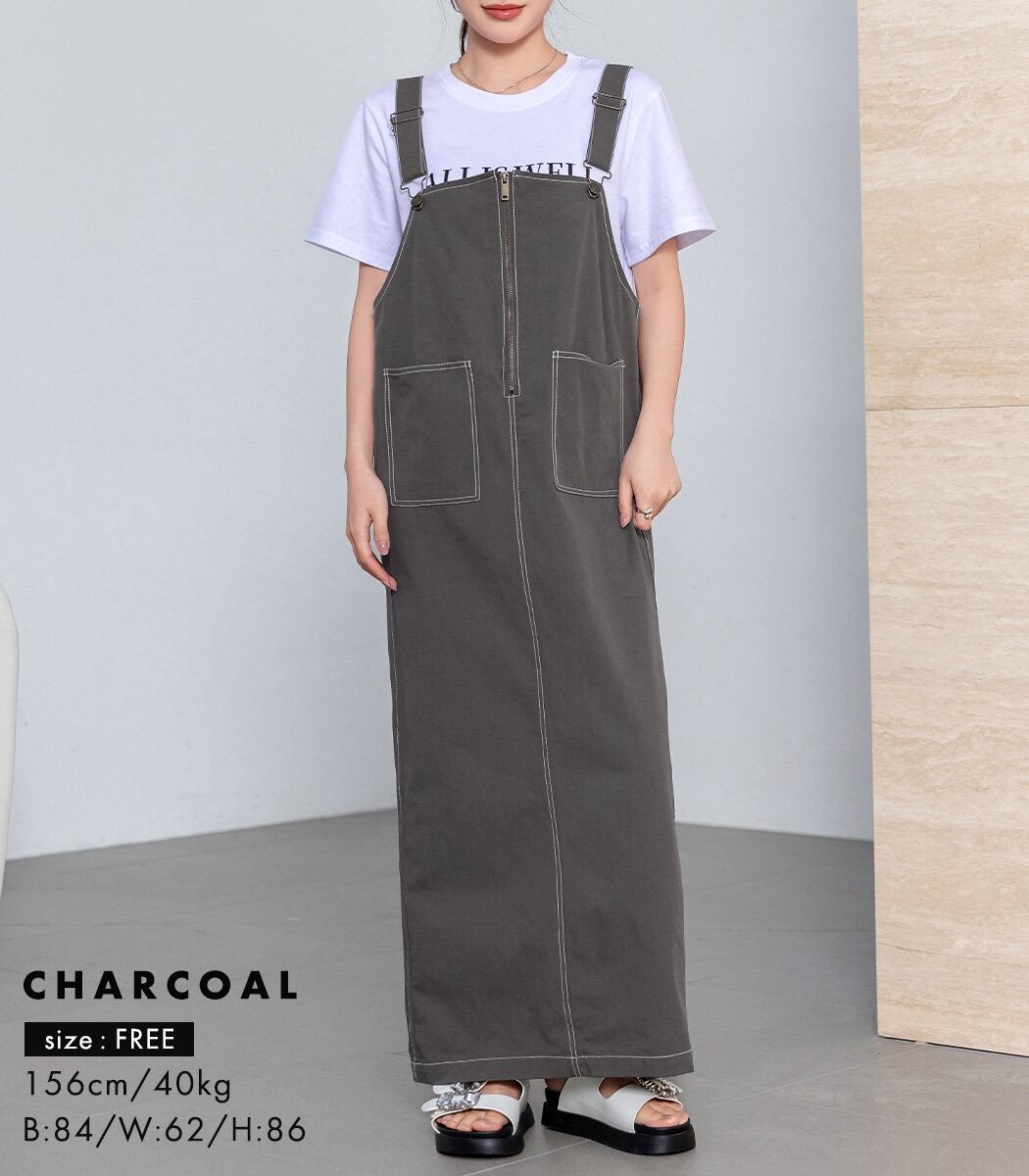 【メール便】「開け閉めで印象変わる」ジャンパースカート レディース 大人 マキシ丈 ゆったり/tops2243