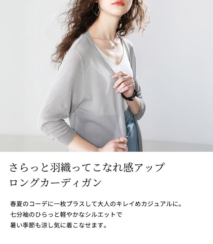 【メール便】「上品きれいにこなれる」ロングカーディガン 薄手 夏用 レディース 七分袖/tops2245