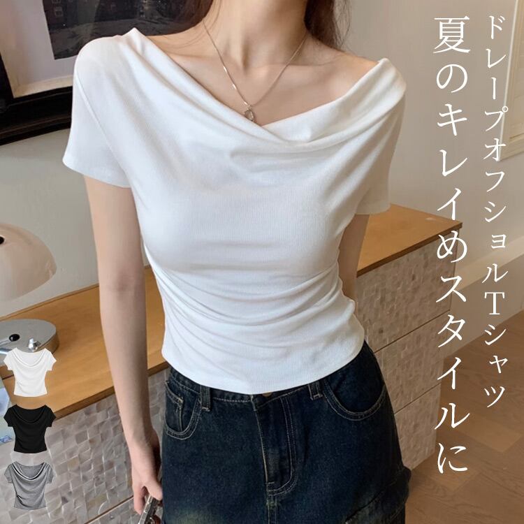 ドレープオフショル半袖Tシャツ