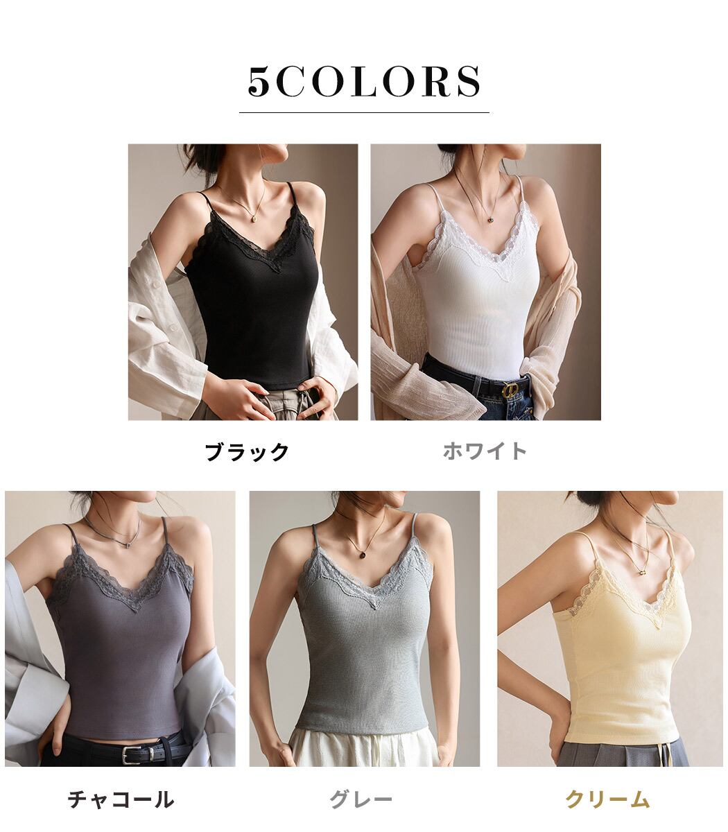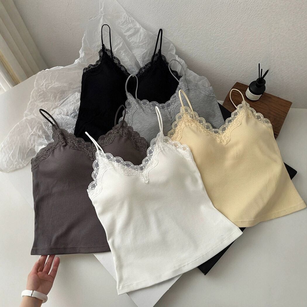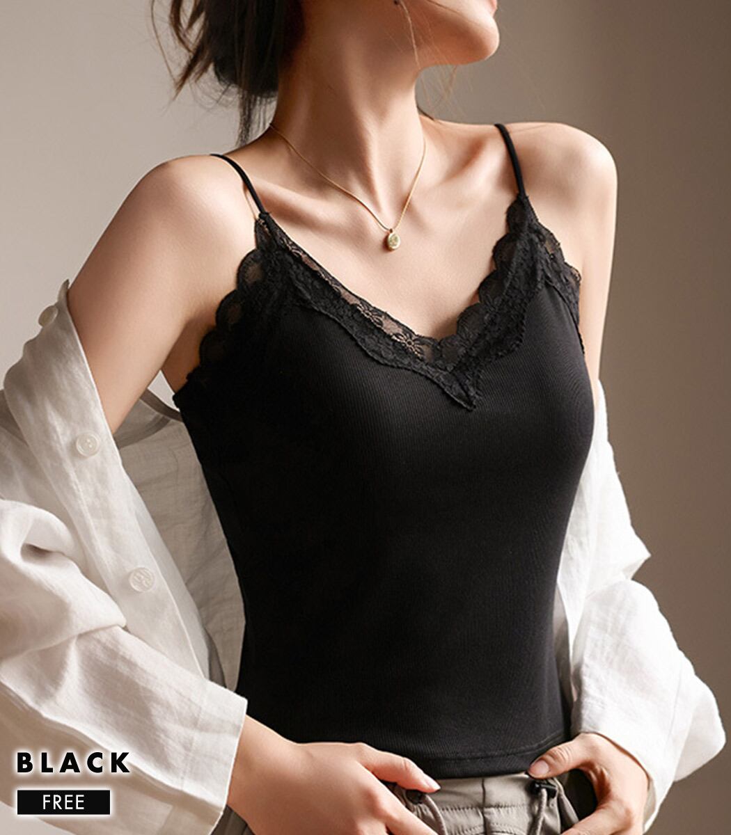【メール便】「1枚で差がつく大人キャミ」キャミソール パッド付き レース インナー トップス/tops2249