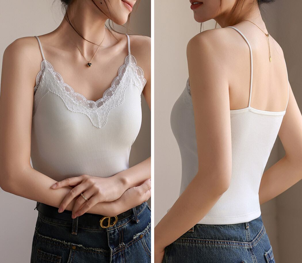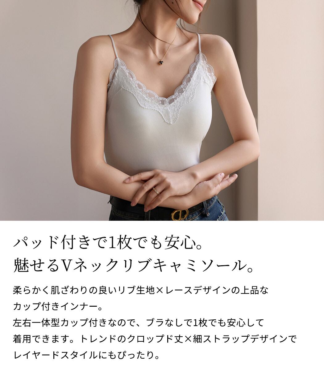 魅せるVネックリブキャミソール。