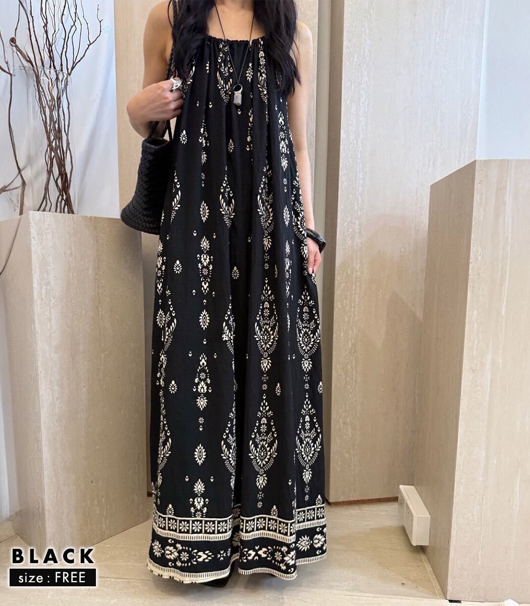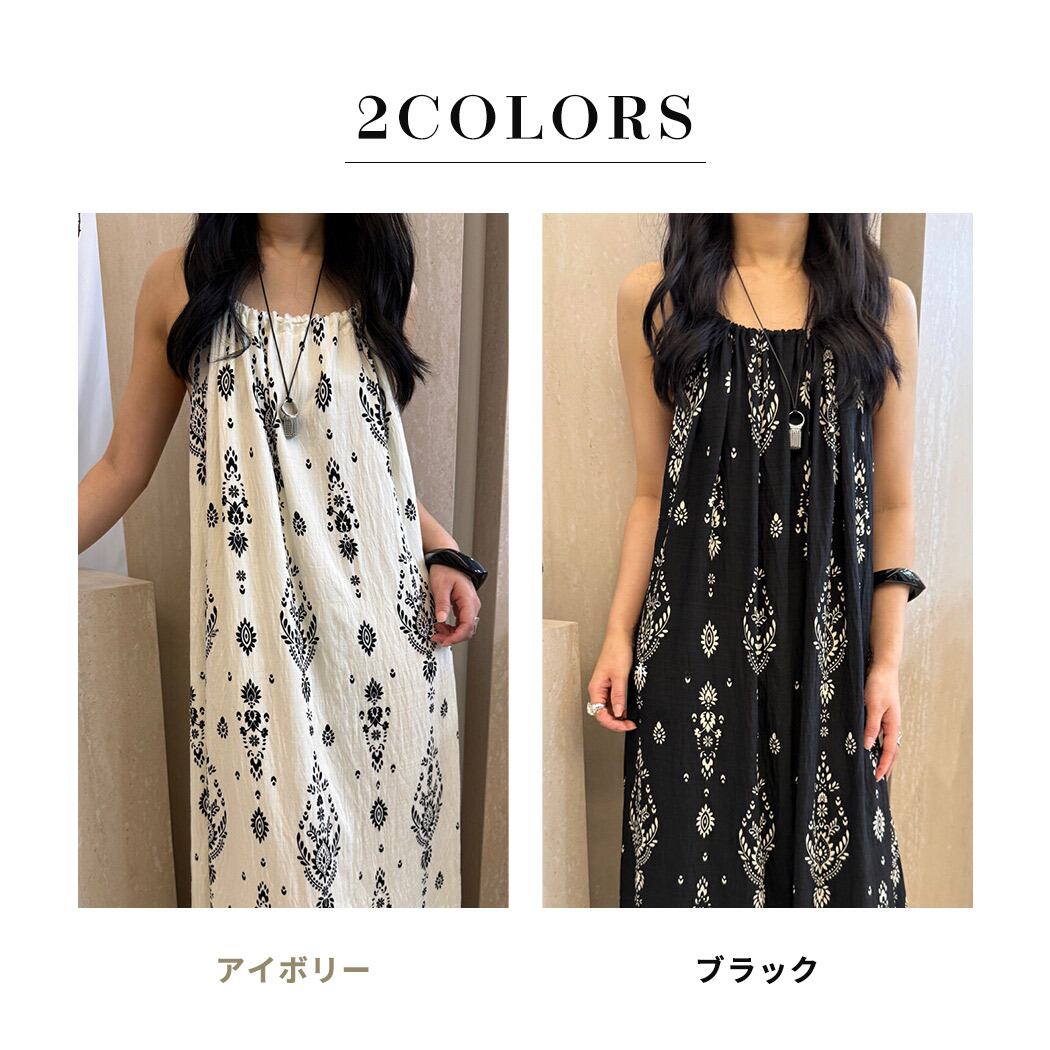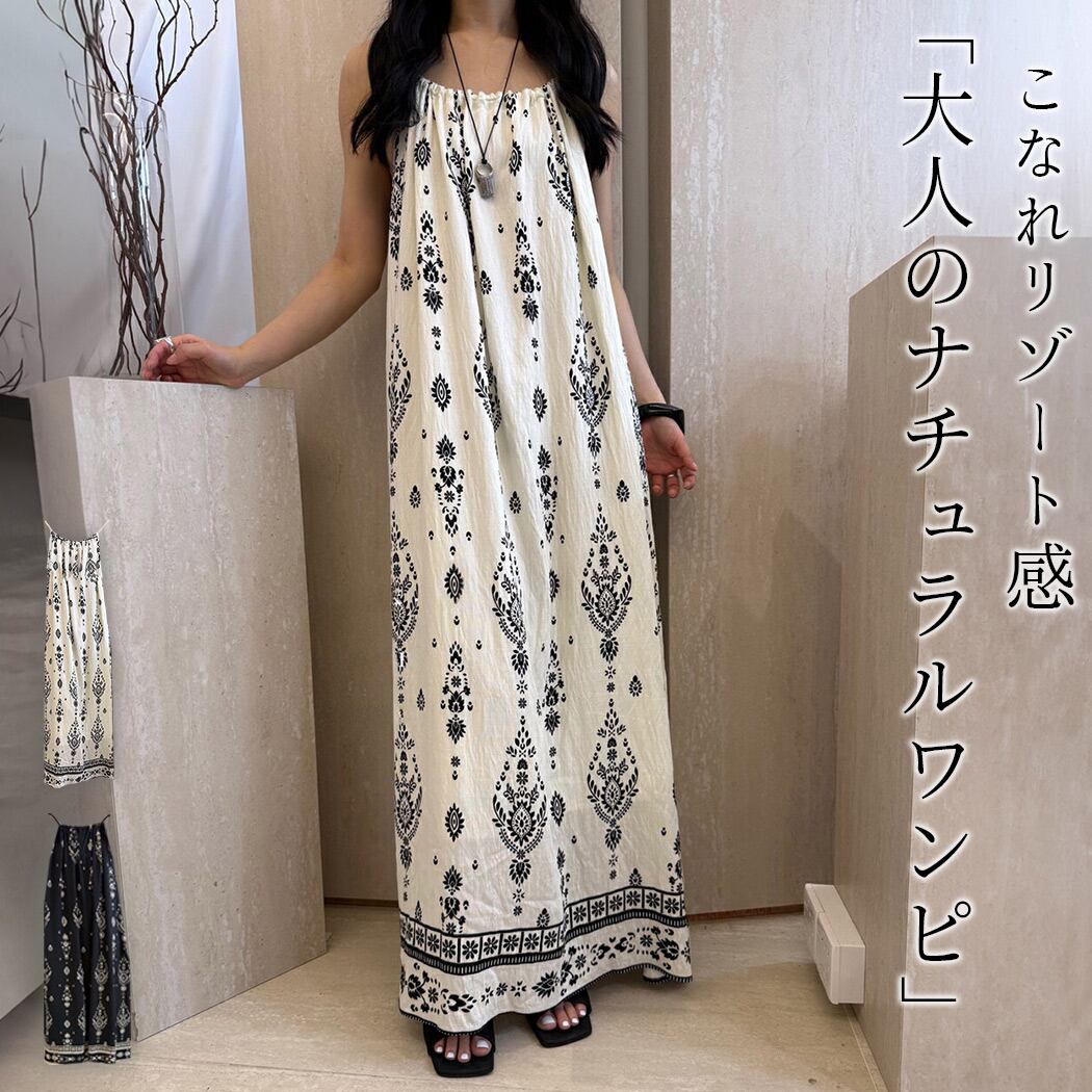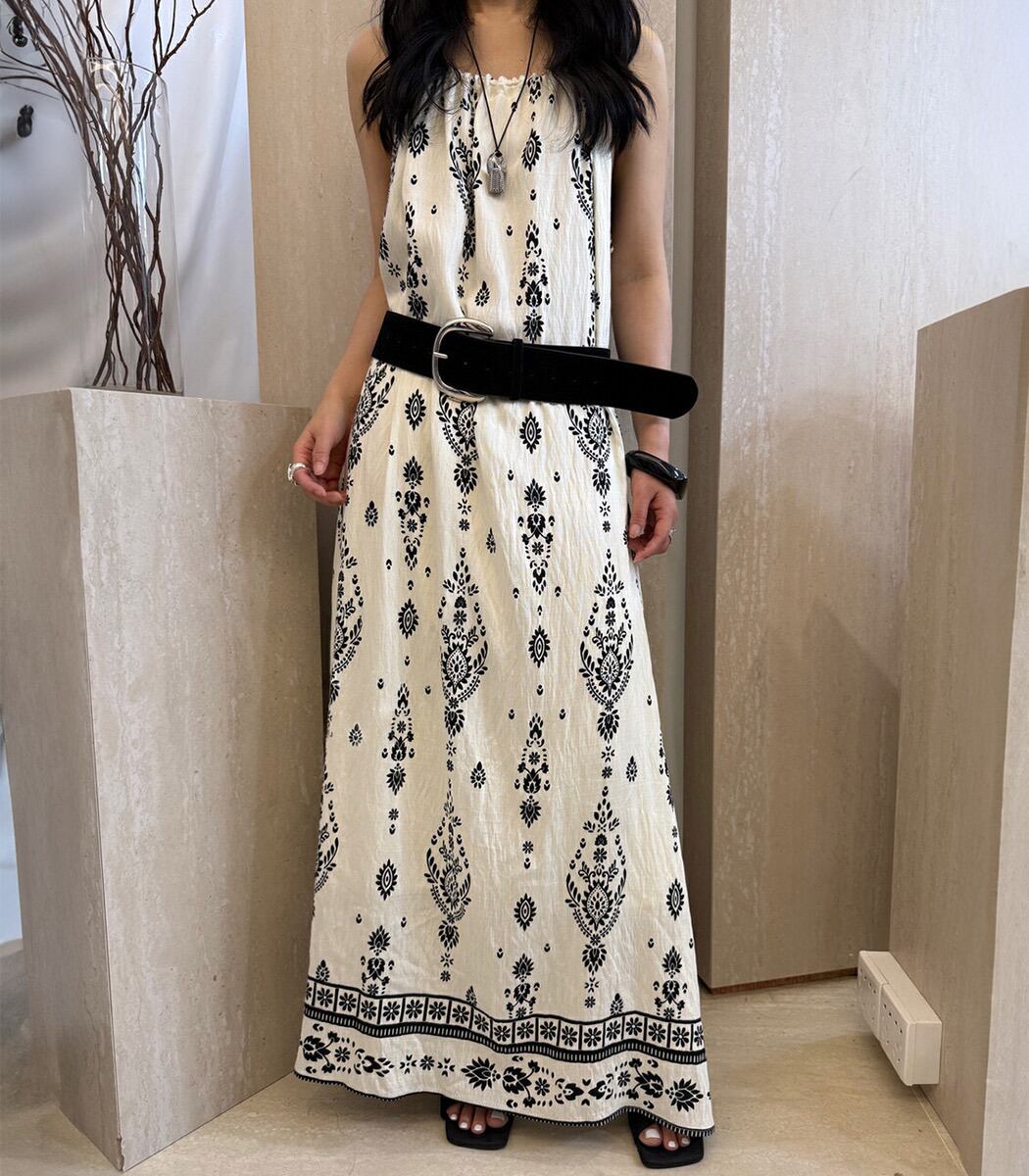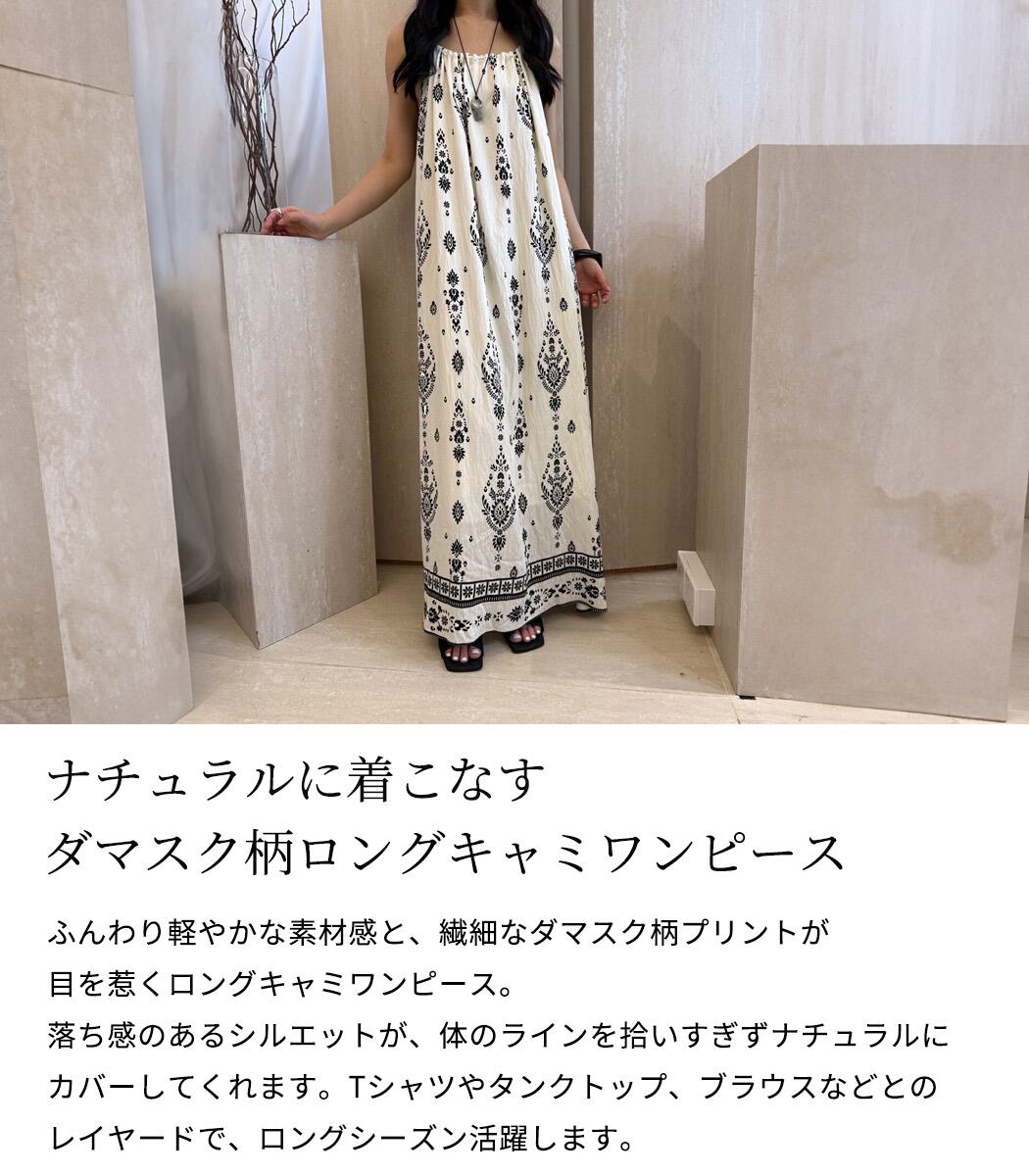 ダマスク柄ロングキャミワンピース