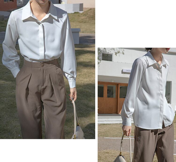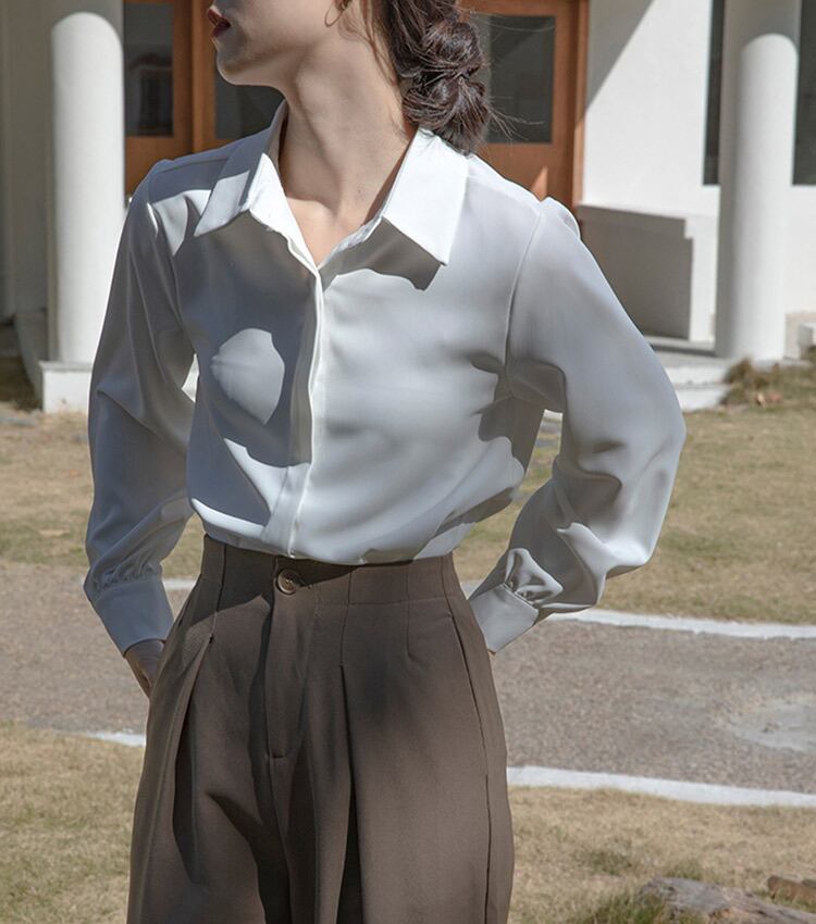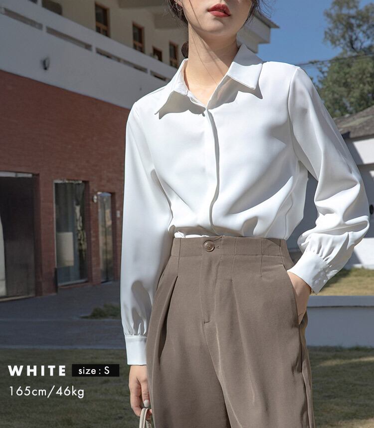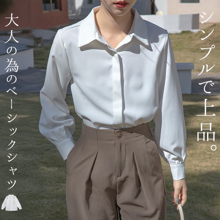 【メール便】「なんでも合うミニマル」オフィス シャツ レディース ビジネス 長袖/tops2294