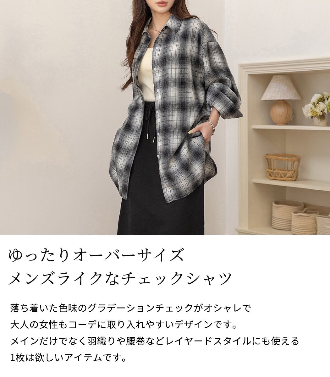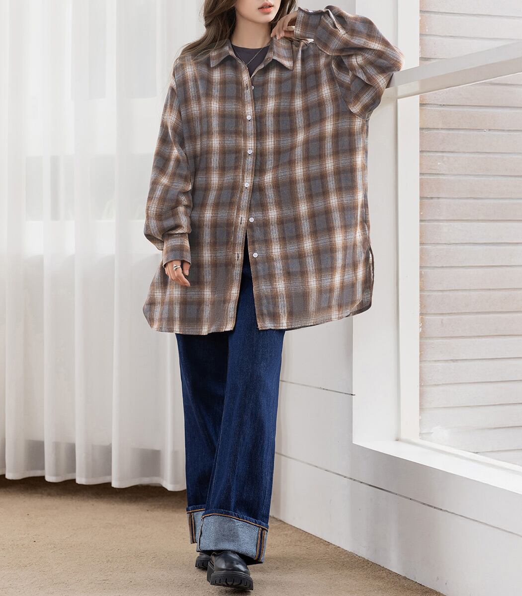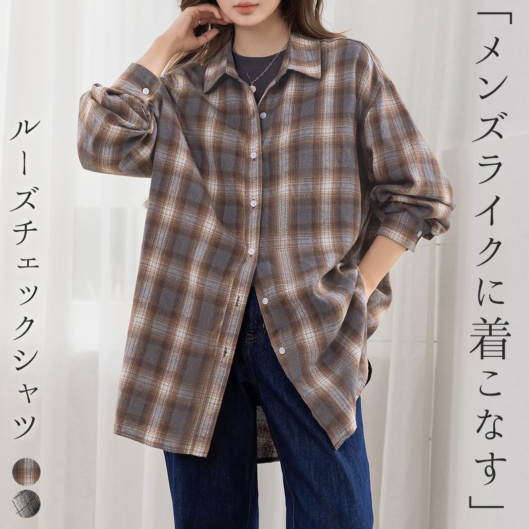 【メール便】「定番シャツをメンズライクに」チェックシャツ レディース 長袖 オーバーサイズ ゆったり/tops2301