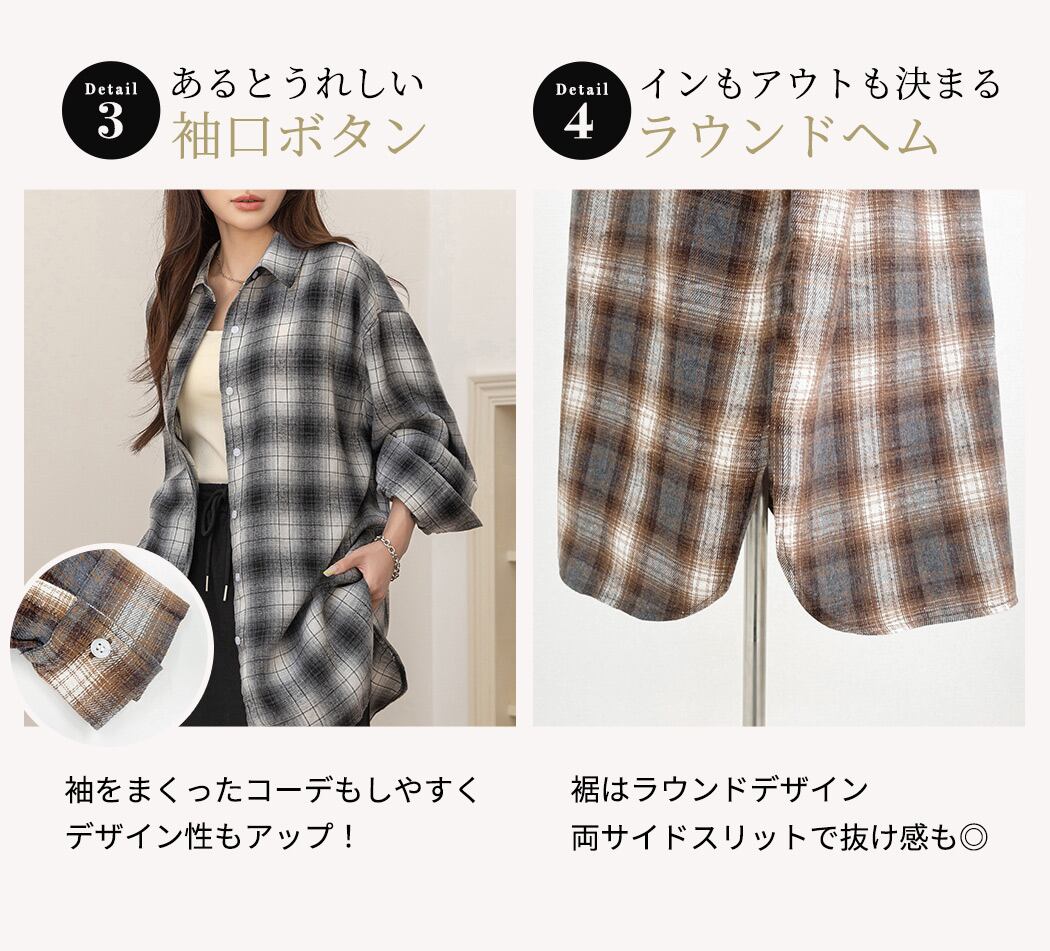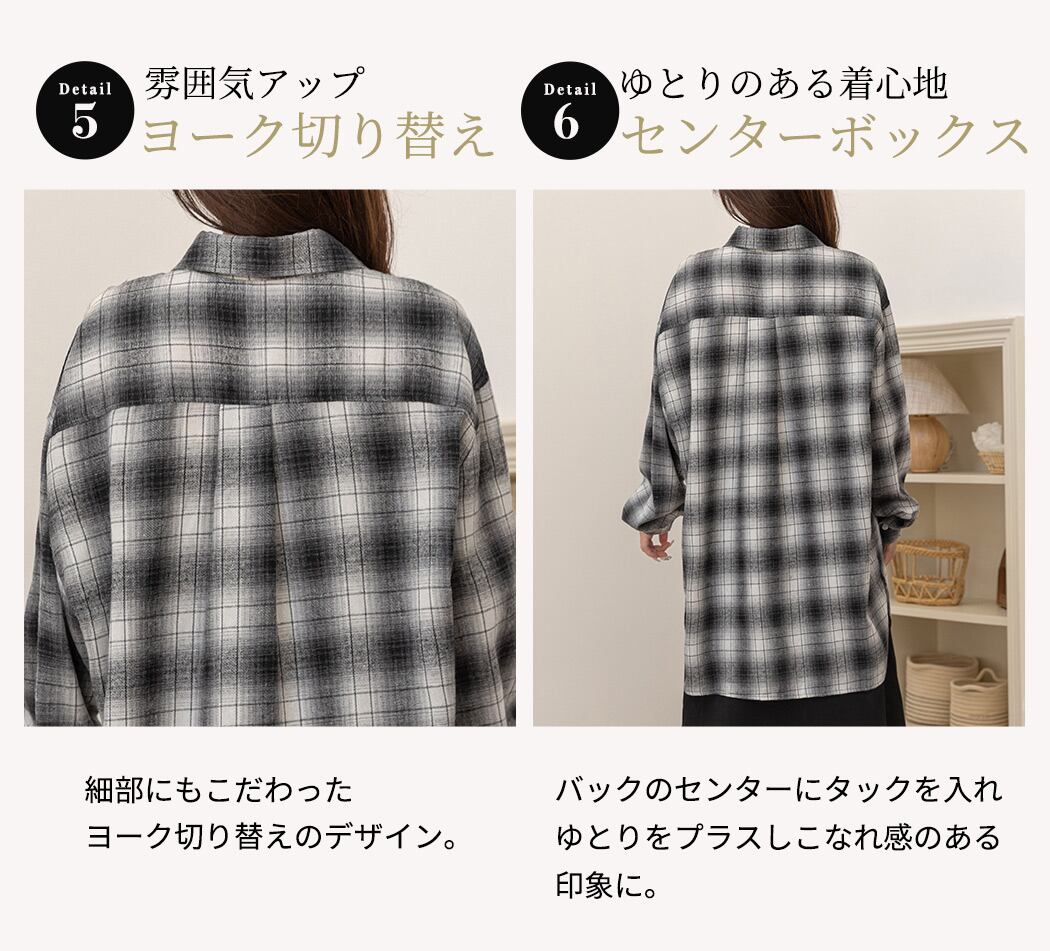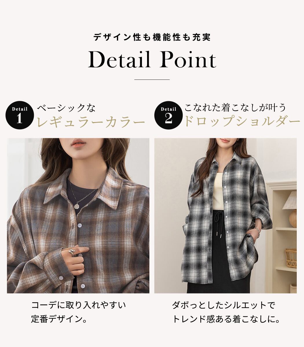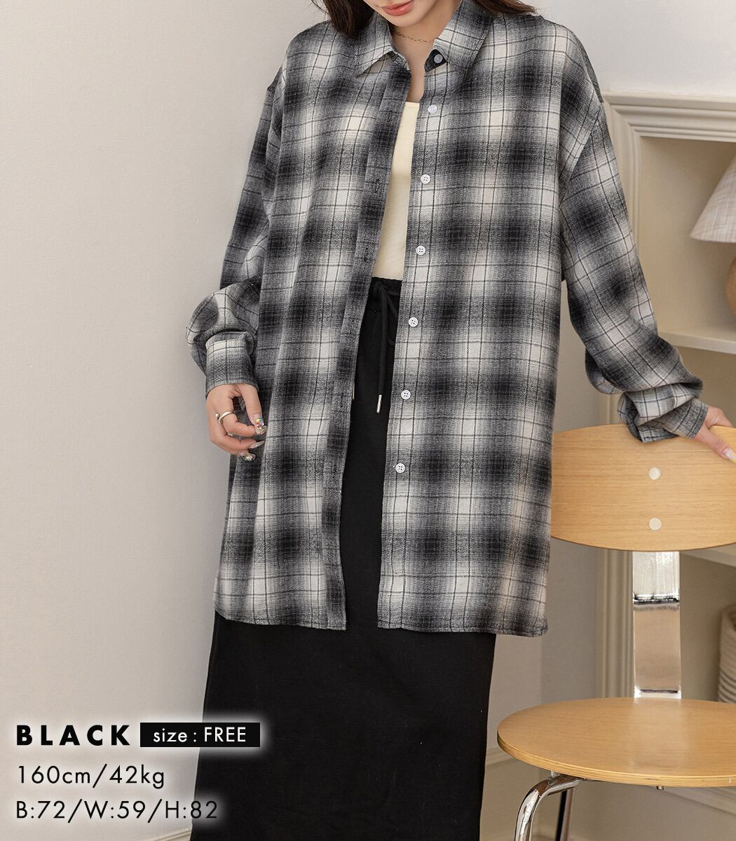 【メール便】「定番シャツをメンズライクに」チェックシャツ レディース 長袖 オーバーサイズ ゆったり/tops2301