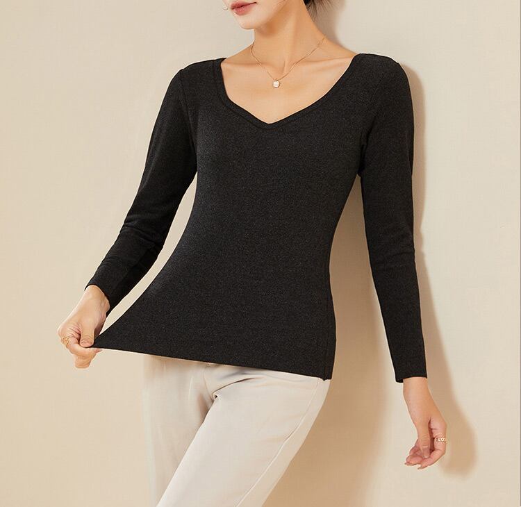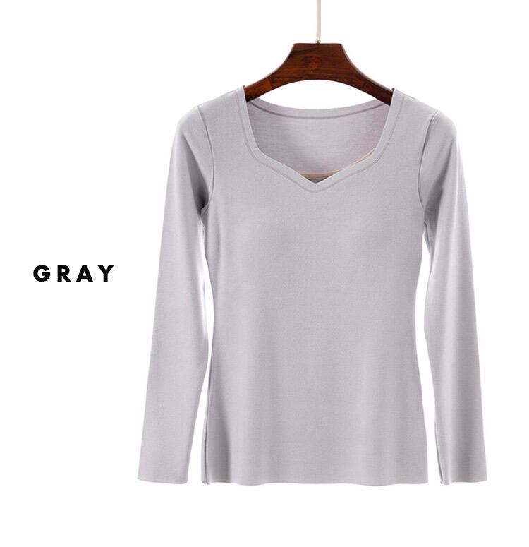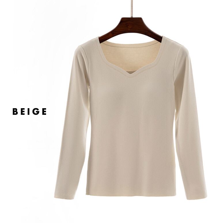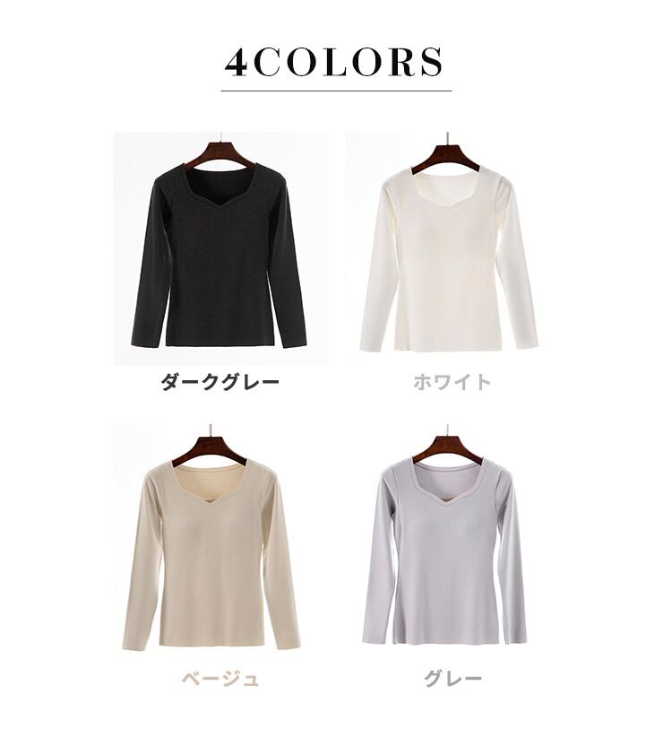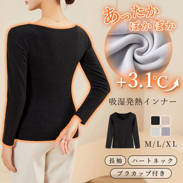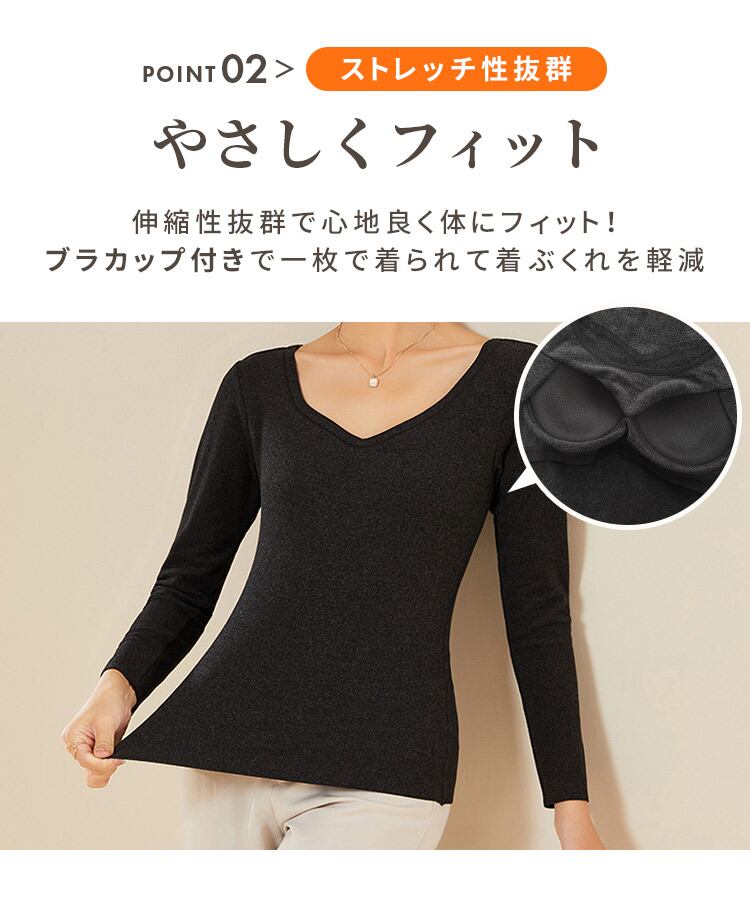 【メール便】「吸湿発熱であったか」インナー シャツ 長袖 レディース カップ付き/tops2307