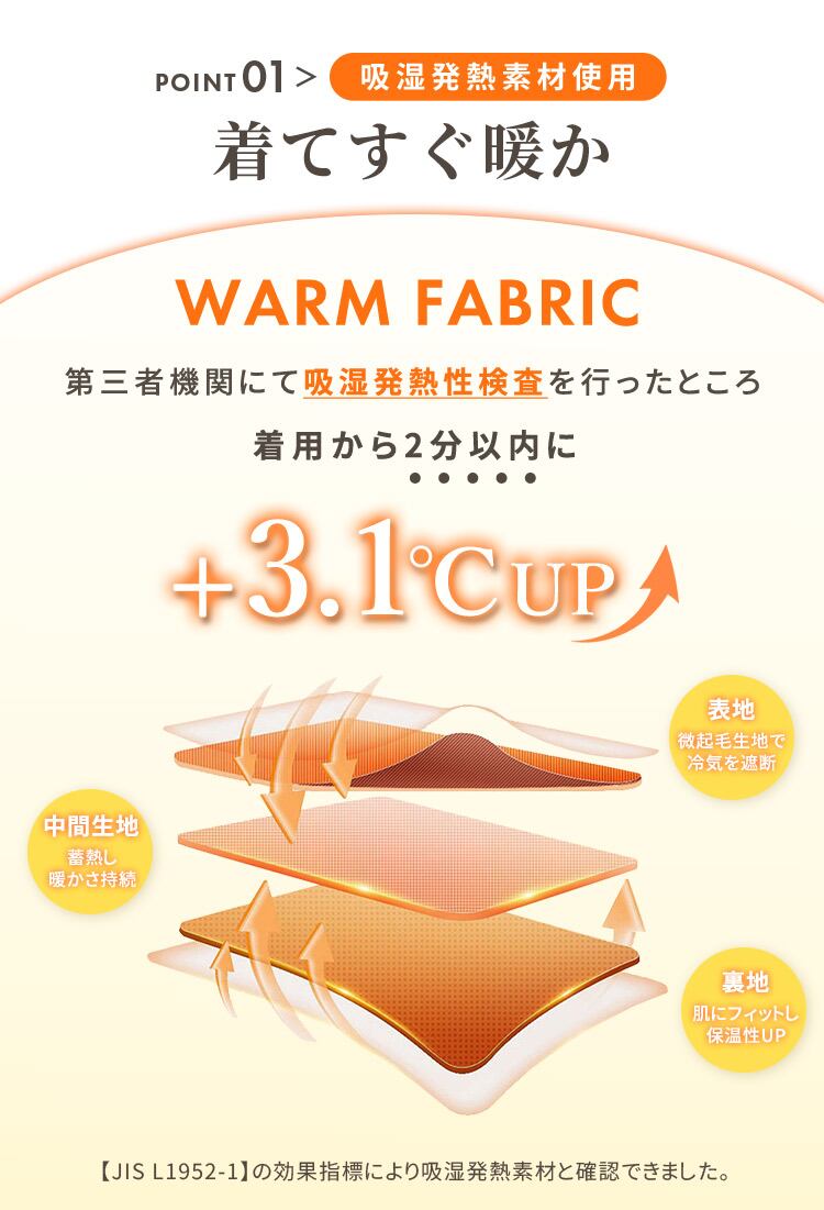発熱性:吸湿発熱生地で冬でもぽかぽか
