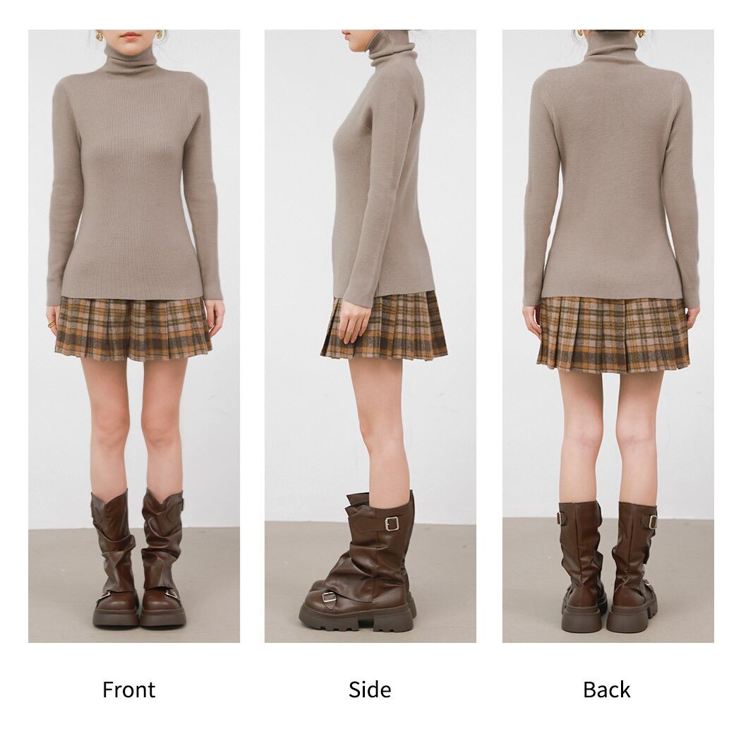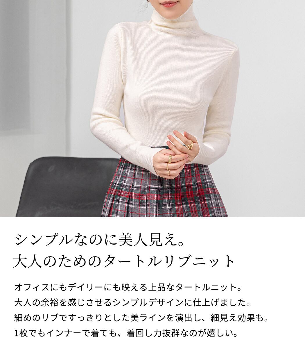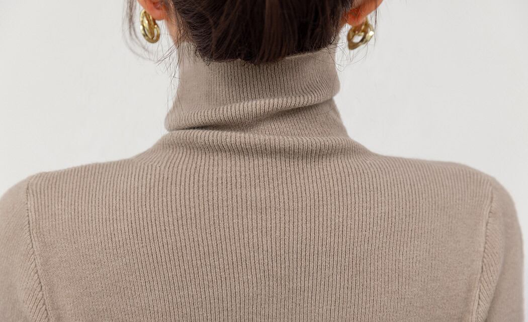 オフィスにもデイリーにも映える上品なタートルニット。