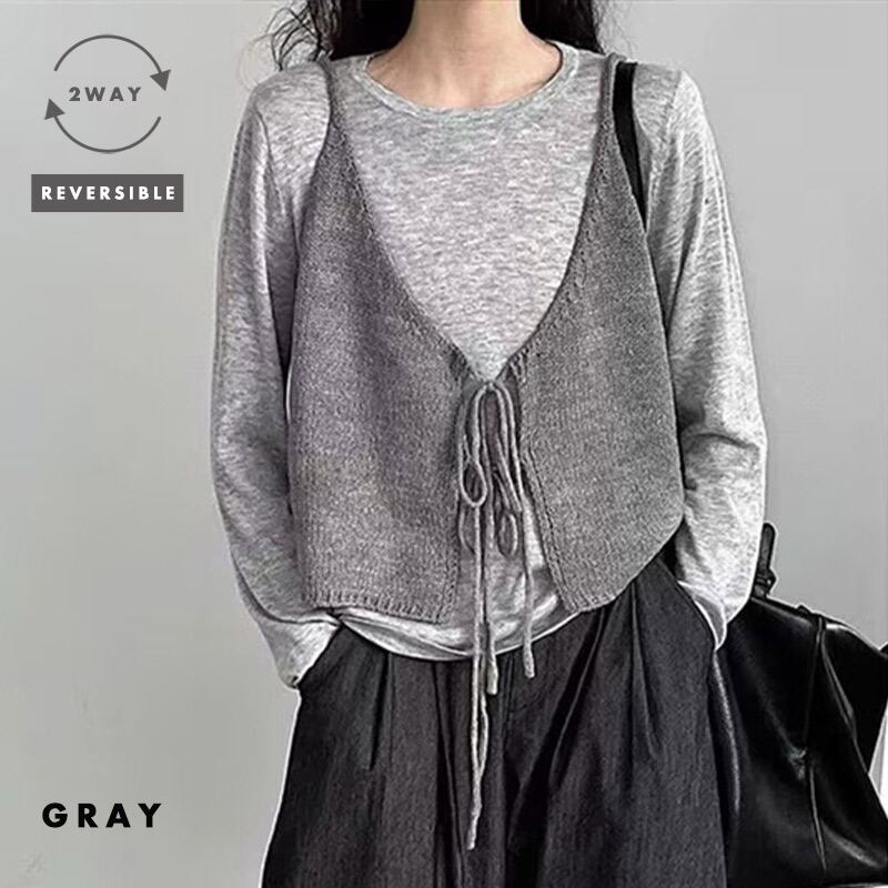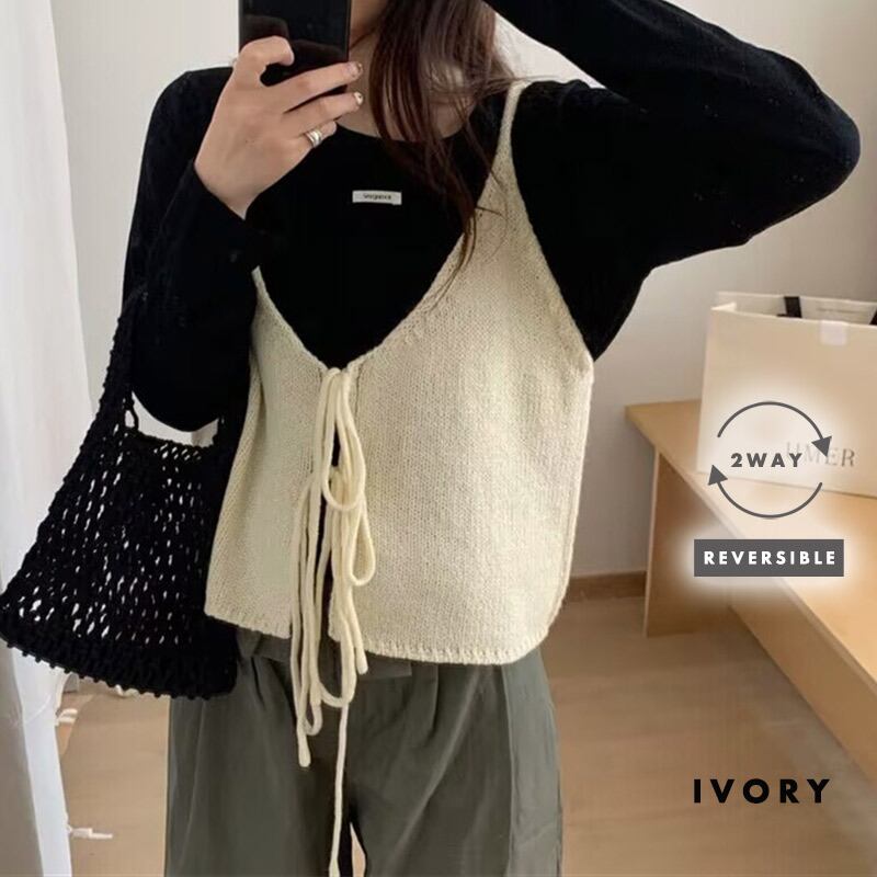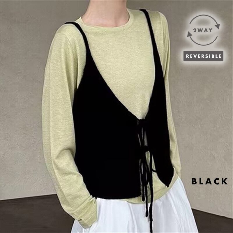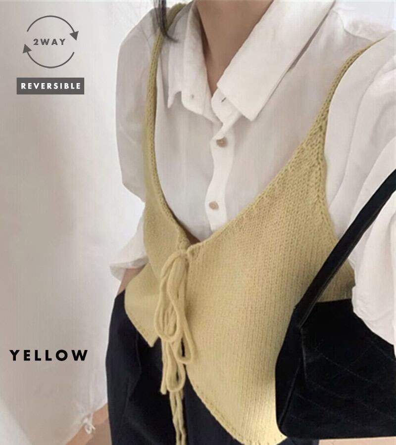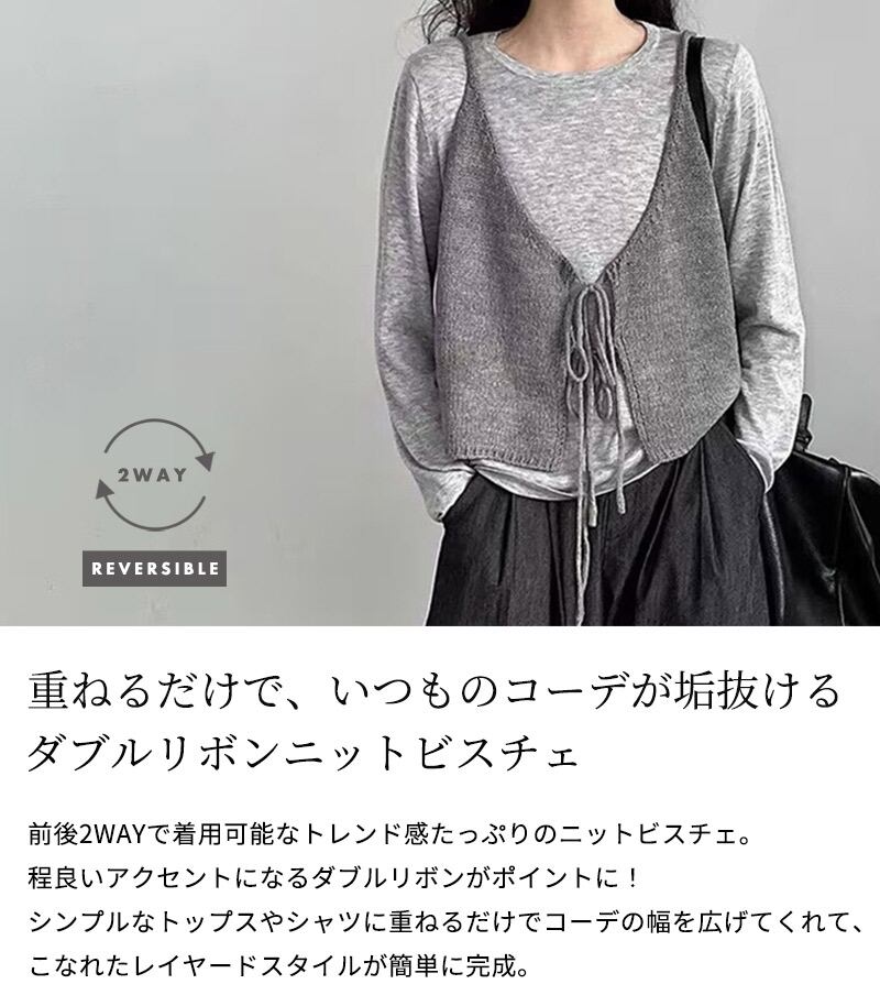 前後2WAYで着用可能なトレンド感たっぷりのニットビスチェ。