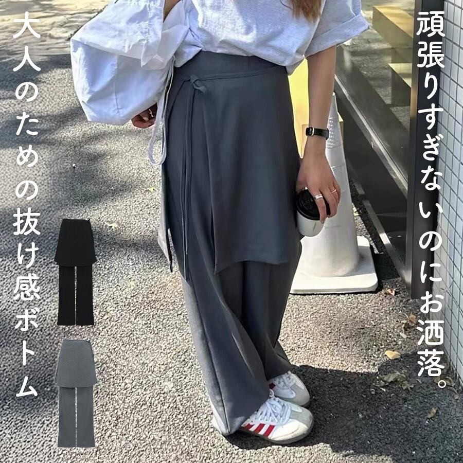 【メール便】「頑張りすぎない抜け感パンツ」スラックス ラップスカート 2点 セット ワイドパンツ/pants629