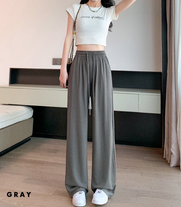 レディース ランダムリブ ワイドパンツ