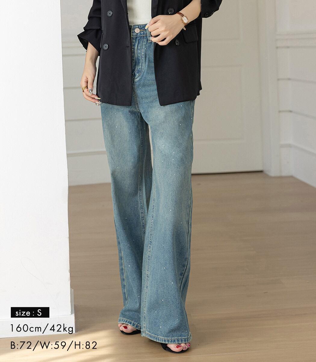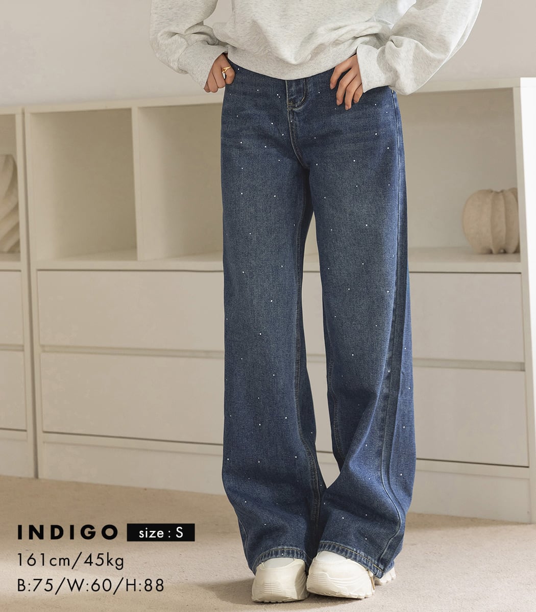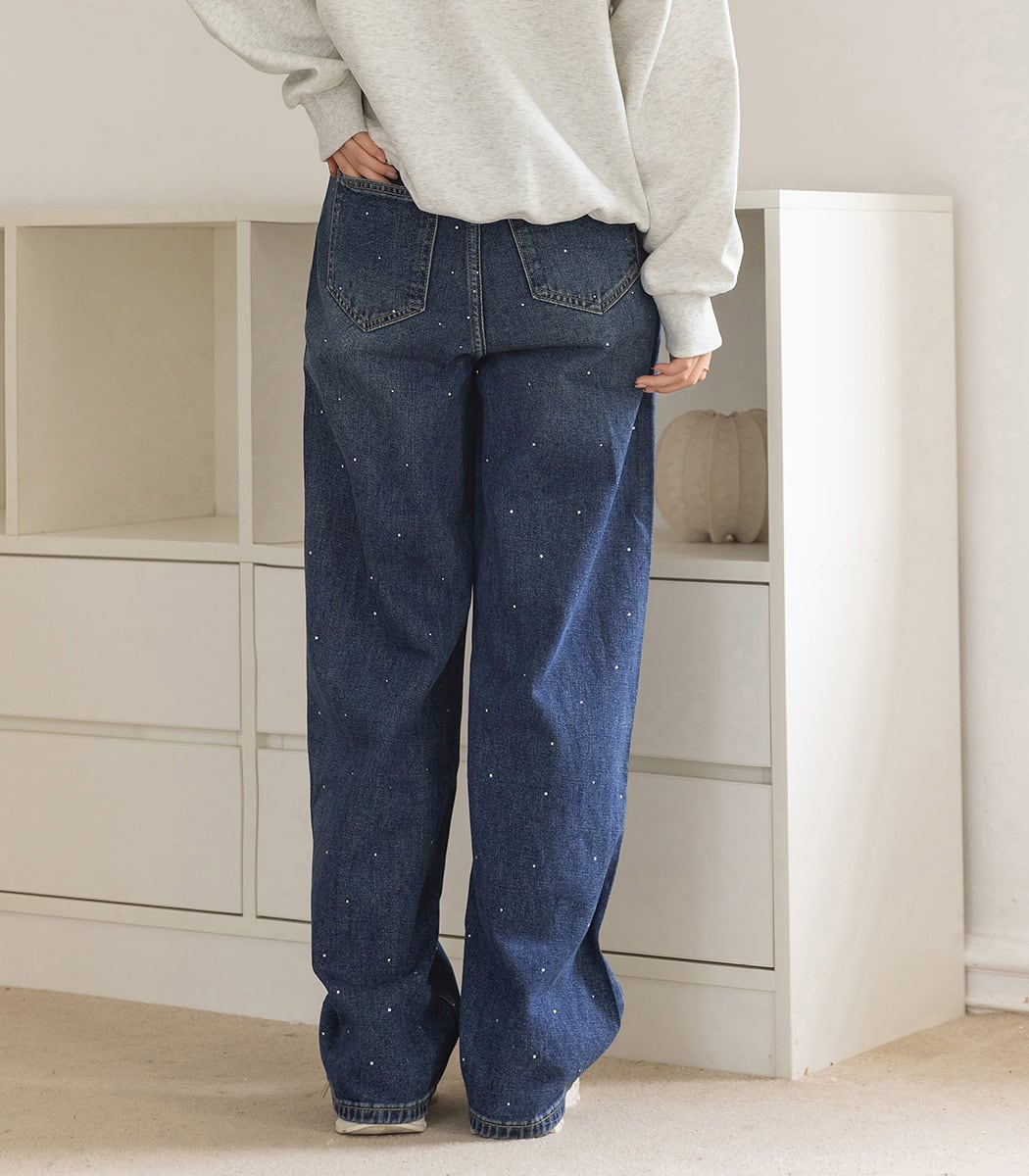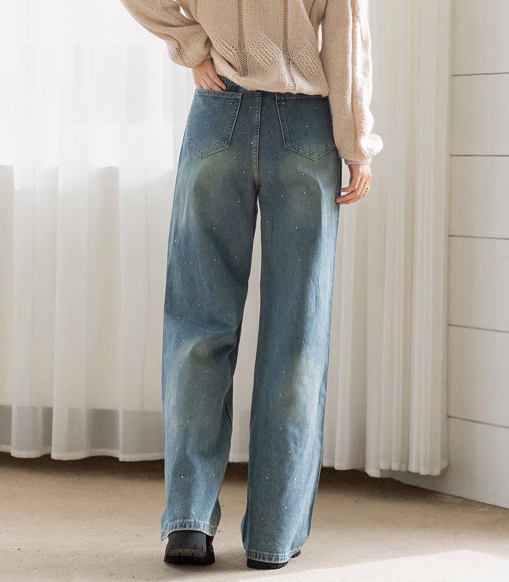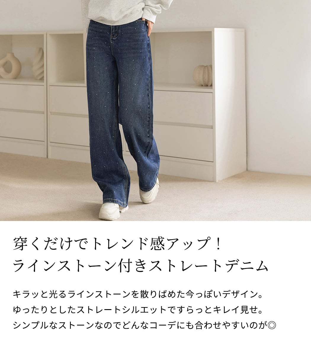 ラインストーン付きストレートデニム。