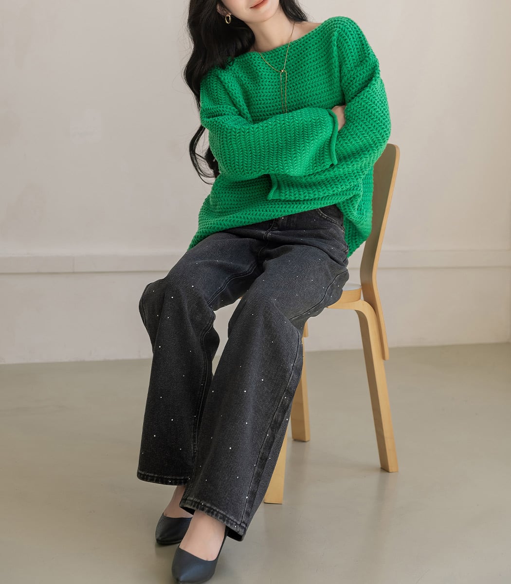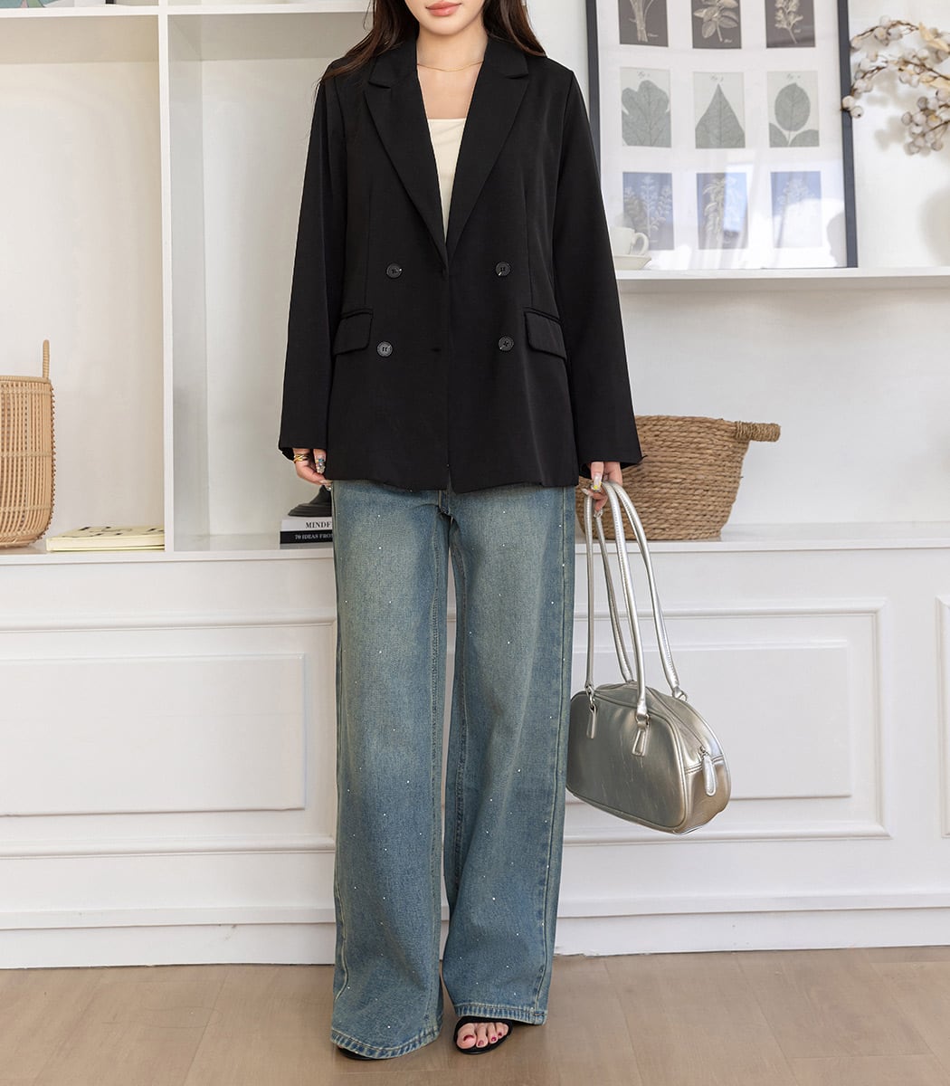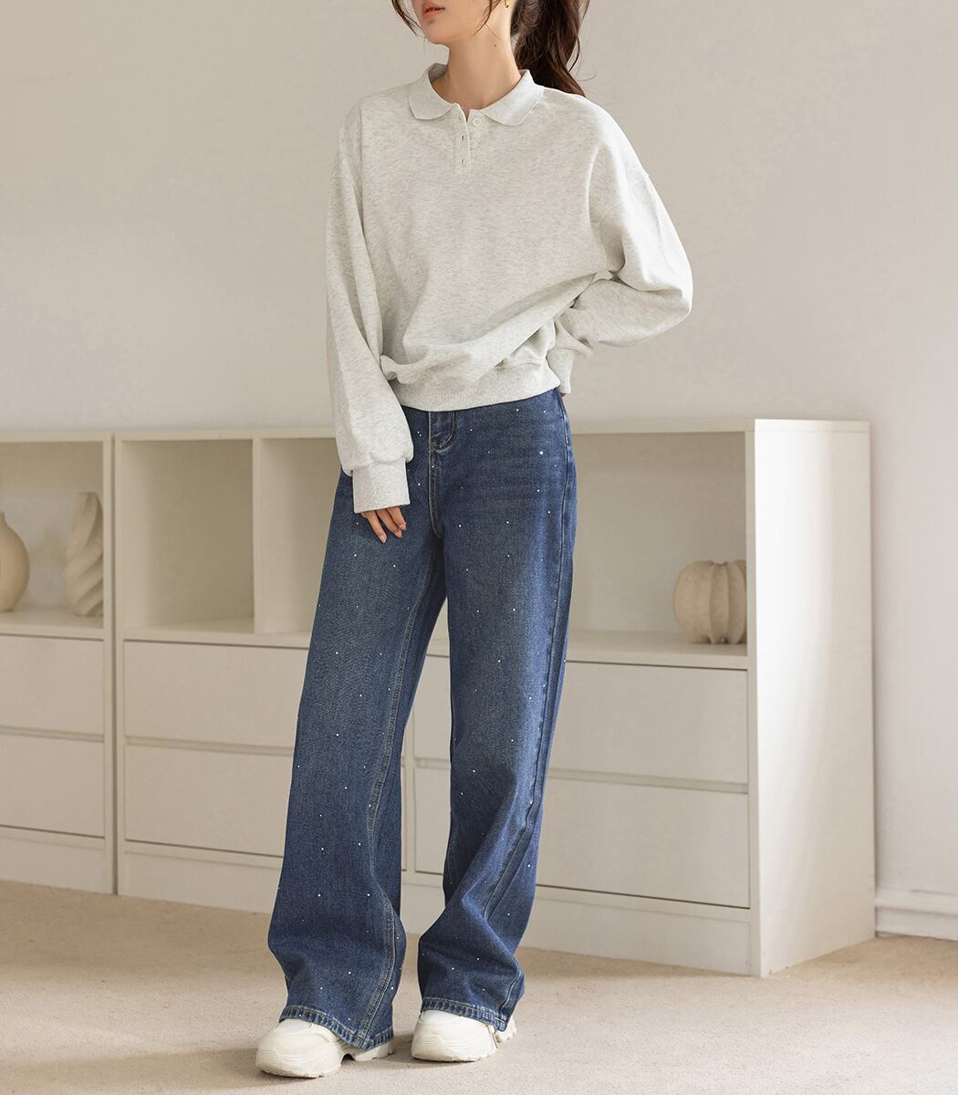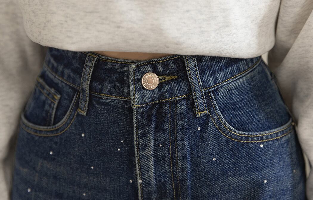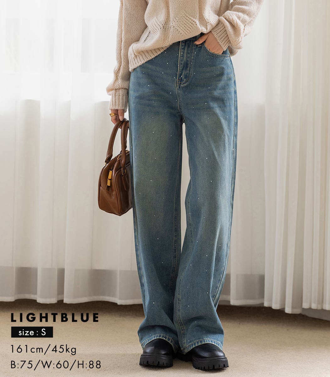 ラインストーン付きストレートデニム。