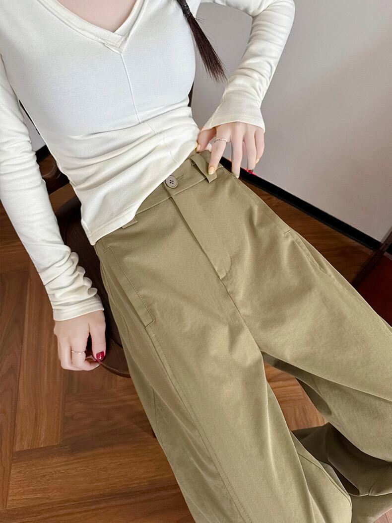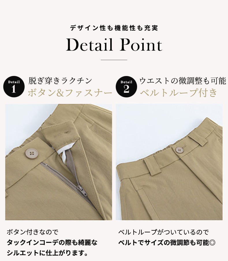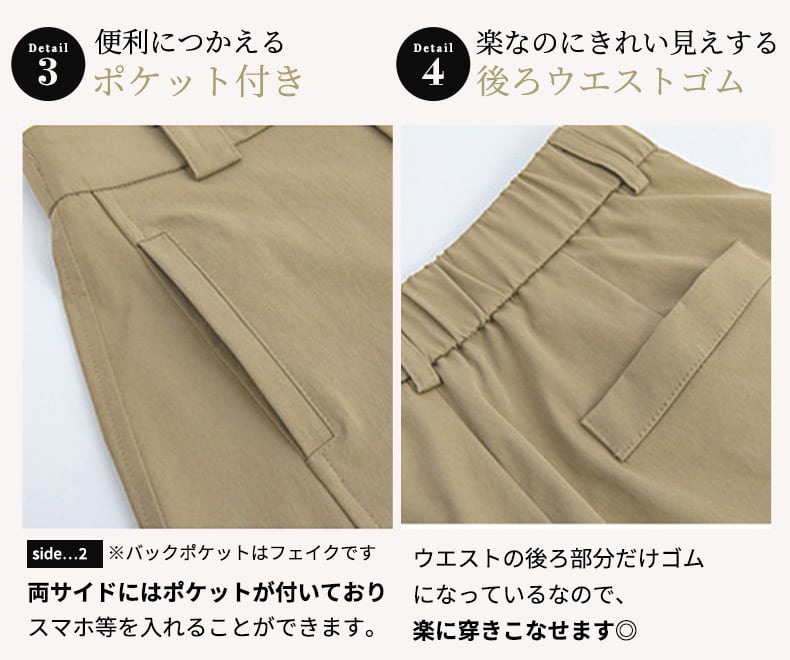 さりげない立体ラインとハイウエストで自然にスタイルアップも◎